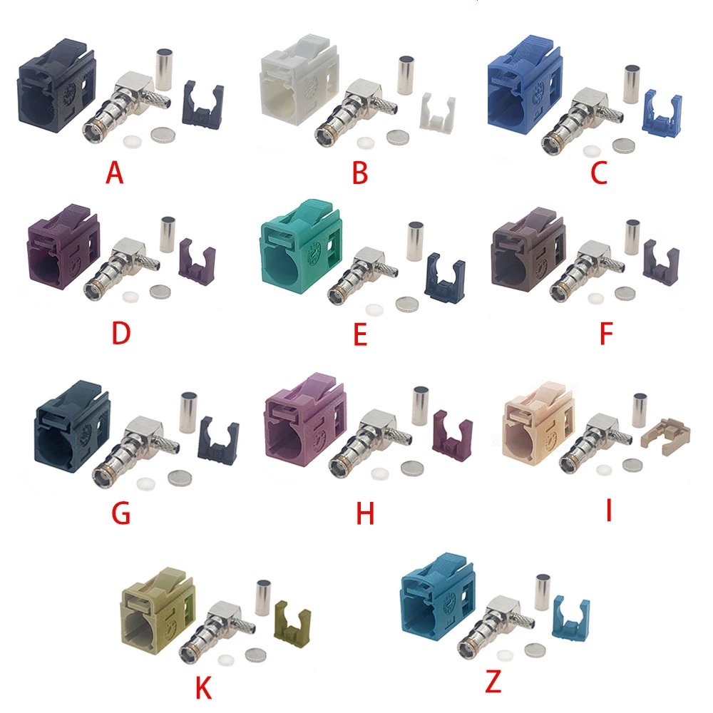 2 шт./лот Fakra Female 90 градусов A/B/C/D/E/F/G/H/I/K/Z RF коаксиальный паяльный провод разъемы для кабеля RG316 /RG174