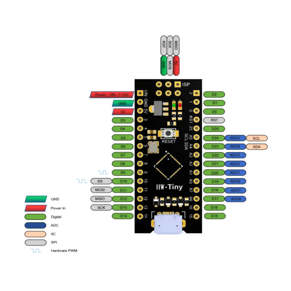 4. 26 контактов ввода/вывода (2 используются для USB, только если ваша программа активно общается по USB, в противном случае вы можете использовать все 6, даже если вы программируете через USB)