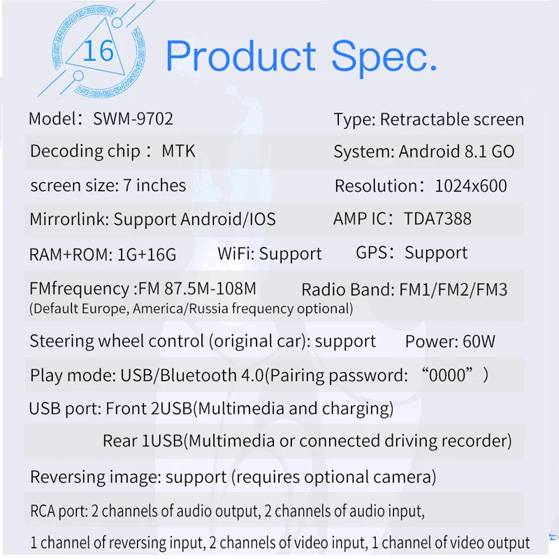 9702 Android 8,1 системы 7 дюймов телескопические автомобилей с MP5 плеер GPS навигации Bluetooth заднего хода