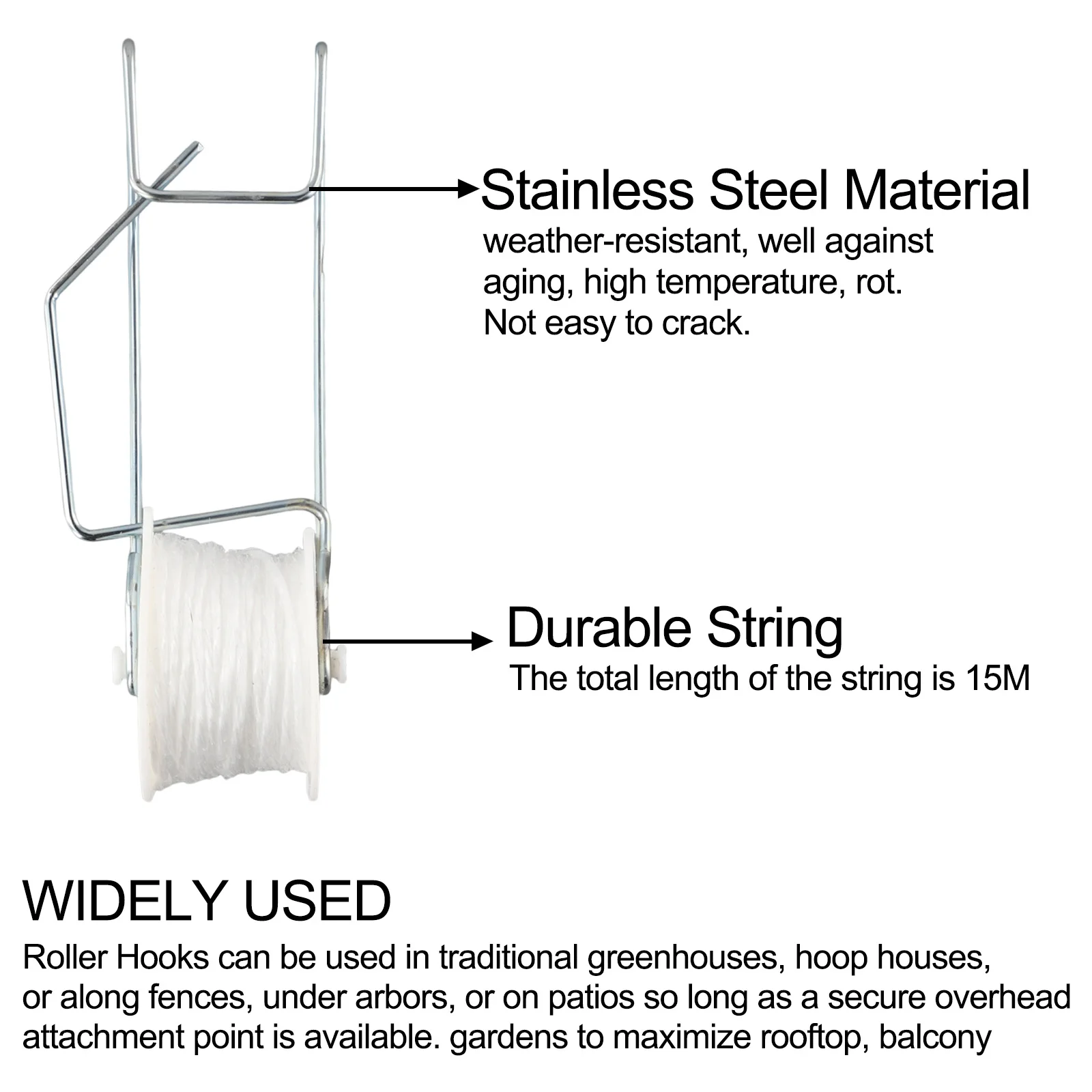 * Способствует росту растений: роликовый крючок для шпалеры томатов помогает равномерно распределять стебли растений в поле, эффективно используя пространство и солнечный свет и Избегайте запутывания. Увеличивает поток воздуха и обеспечивает обширное пространство для садоводства.