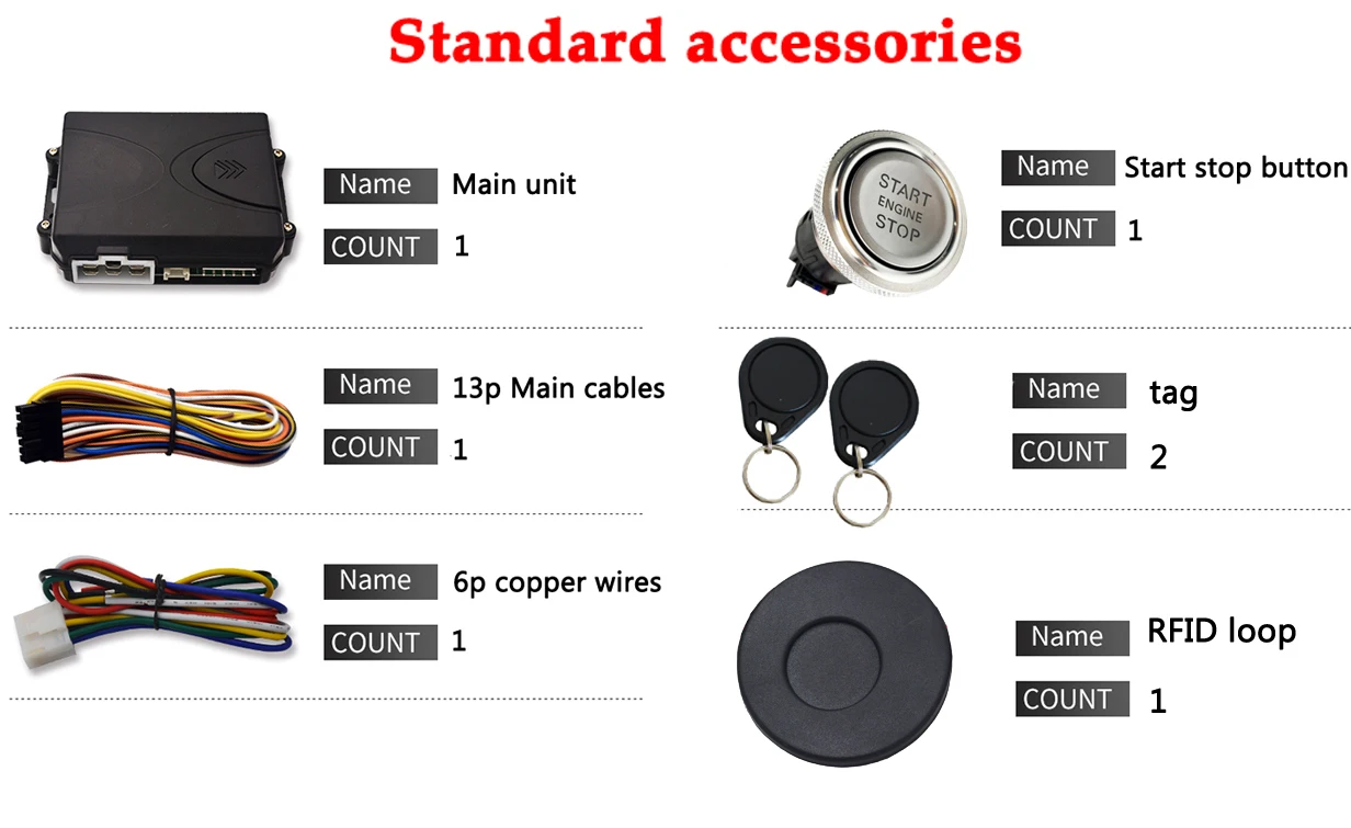1. Если вы хотите иметь только функции RFID и push start stop, вы подключаете только 6P start кабели, не нужно подключать основные кабели.