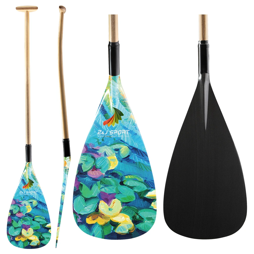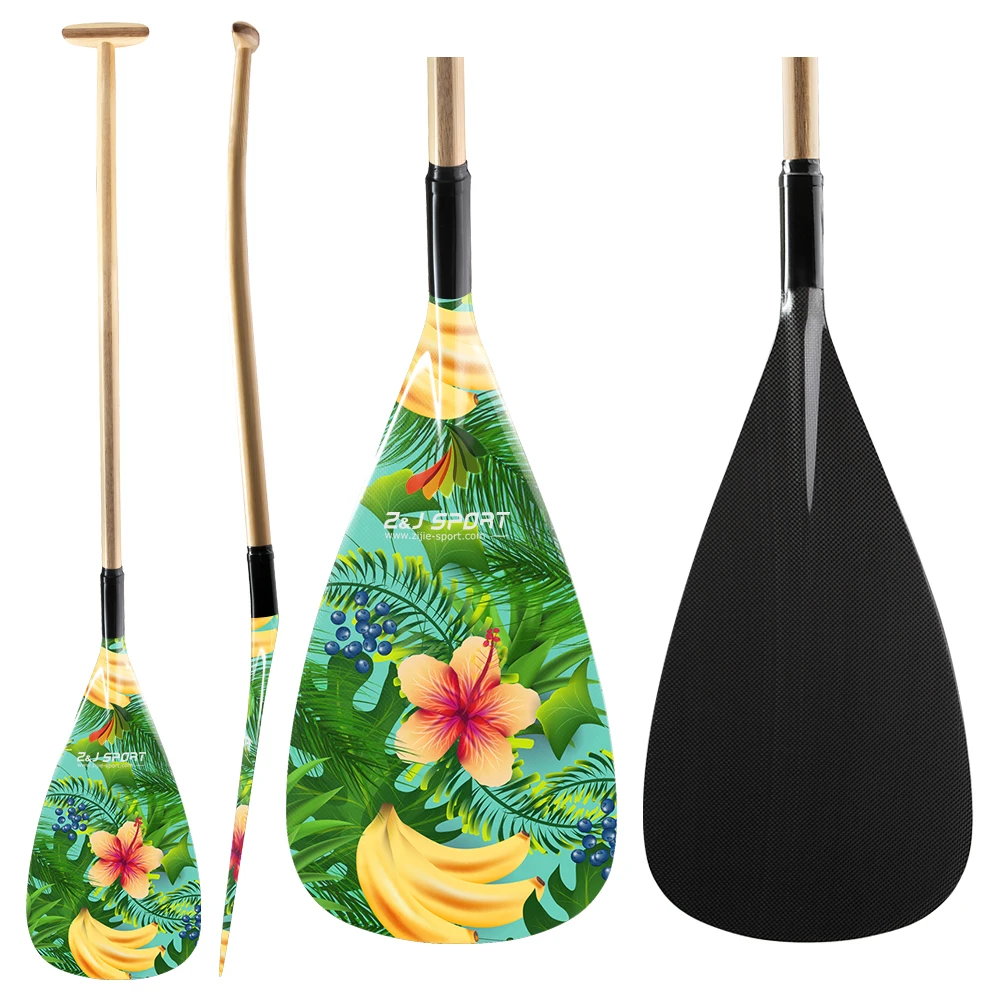 Преимущества на ZJ Спорт Гибридный Аутригер каноэ весло с графикой на углеродное лезвие в изогнутом деревянном валу: