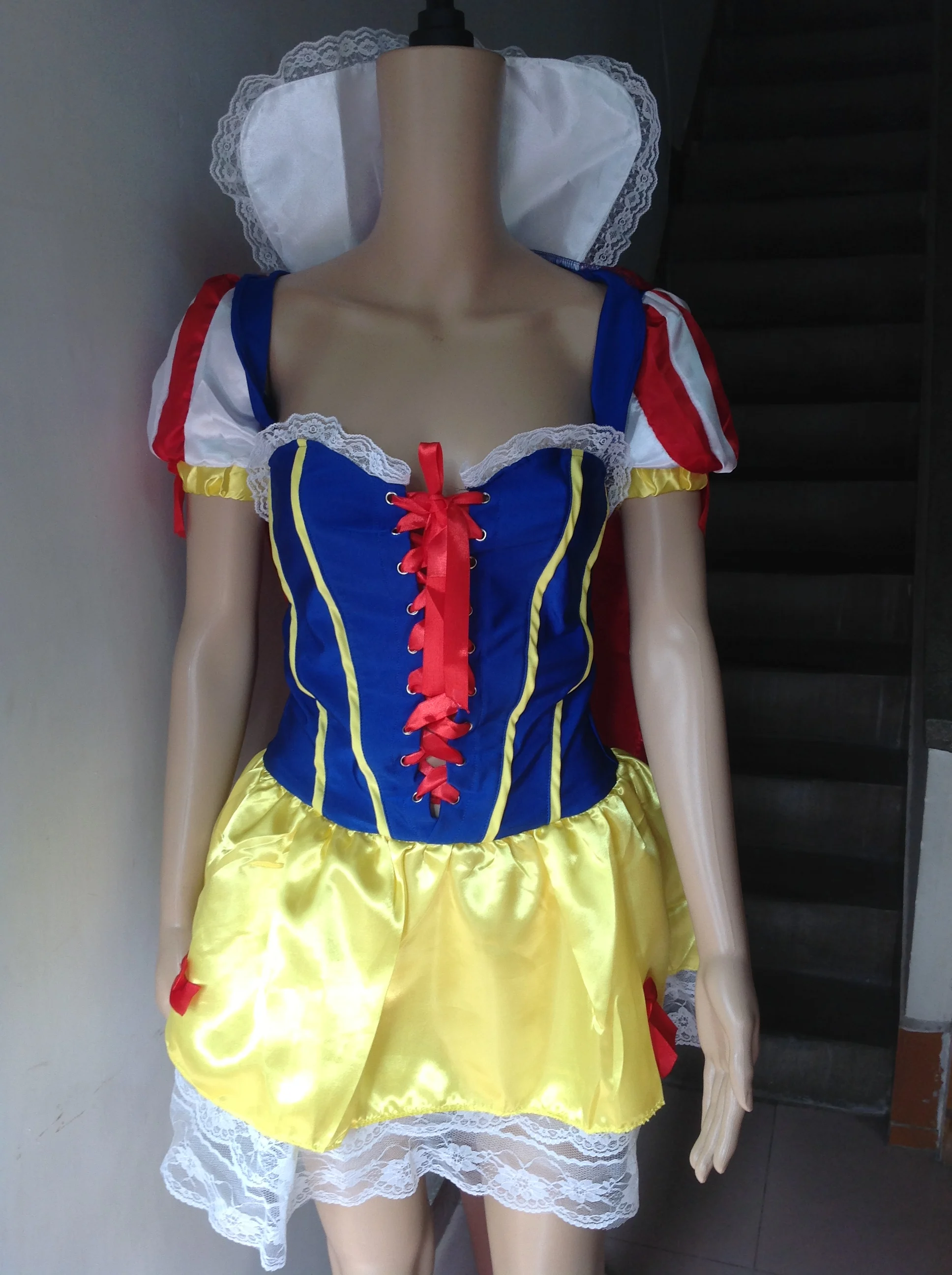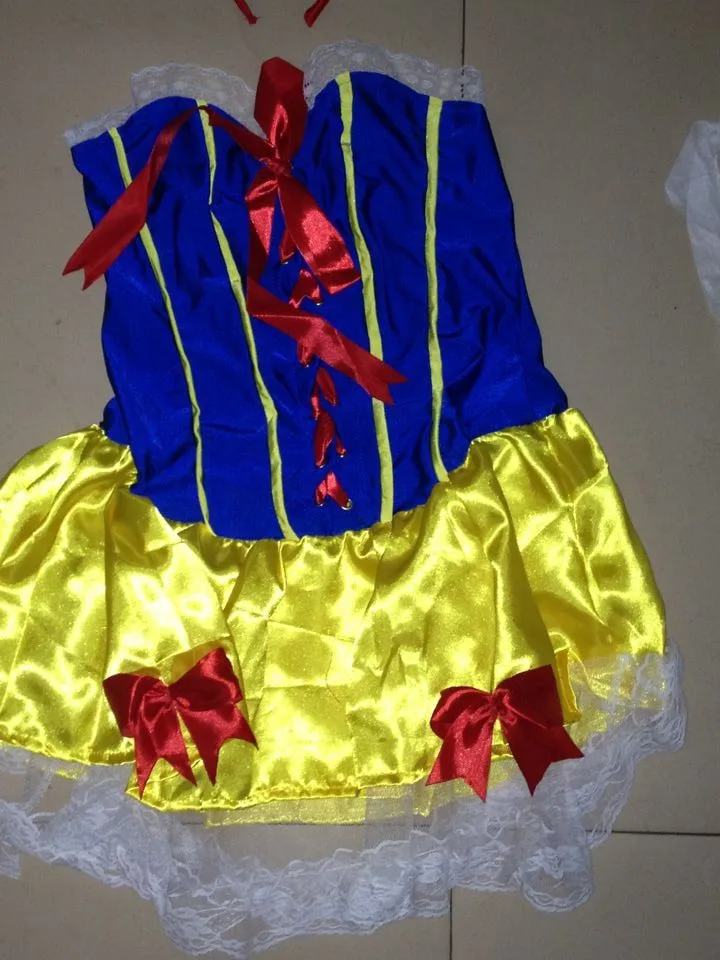 В комплекте мини-юбка с кружевной отделкой и бантом сзади, жакет-болеро с пышными рукавами, накидка и бант головной части. Подъюбник и чулки в комплект не входят. Номер изделия: L1414 Цвет: синий/желтый Размер: один размер Ткань: Акрил + спандекс Тип узора: однотонный Линия талии: Натуральный Стиль: костюм Посылка включает: 1 x костюм в полиэтиленовом пакете