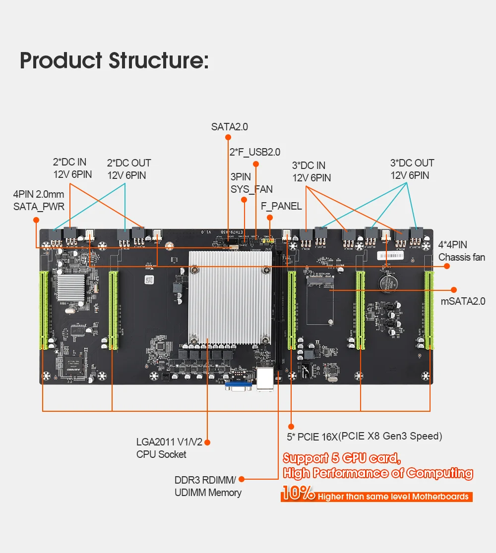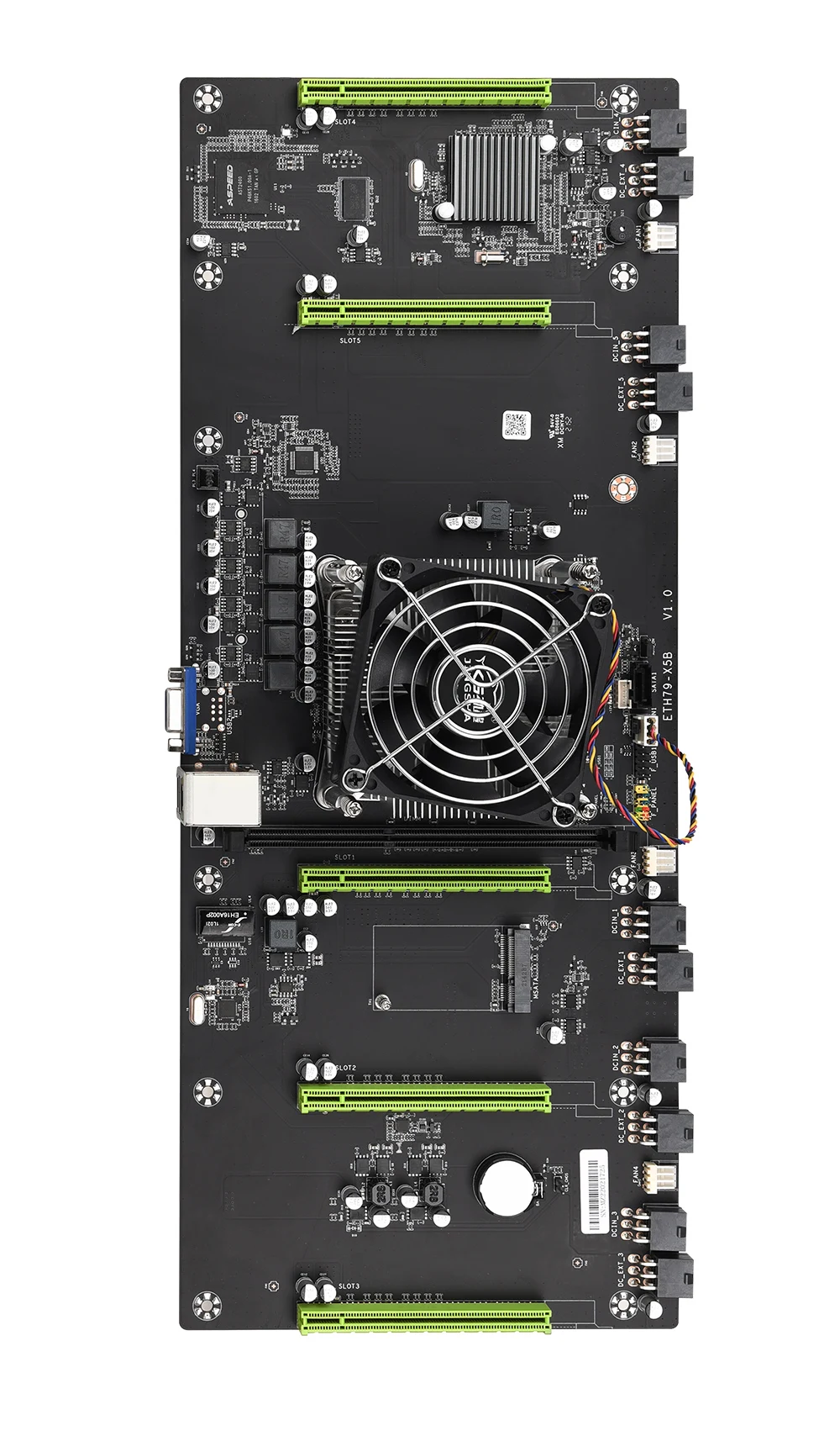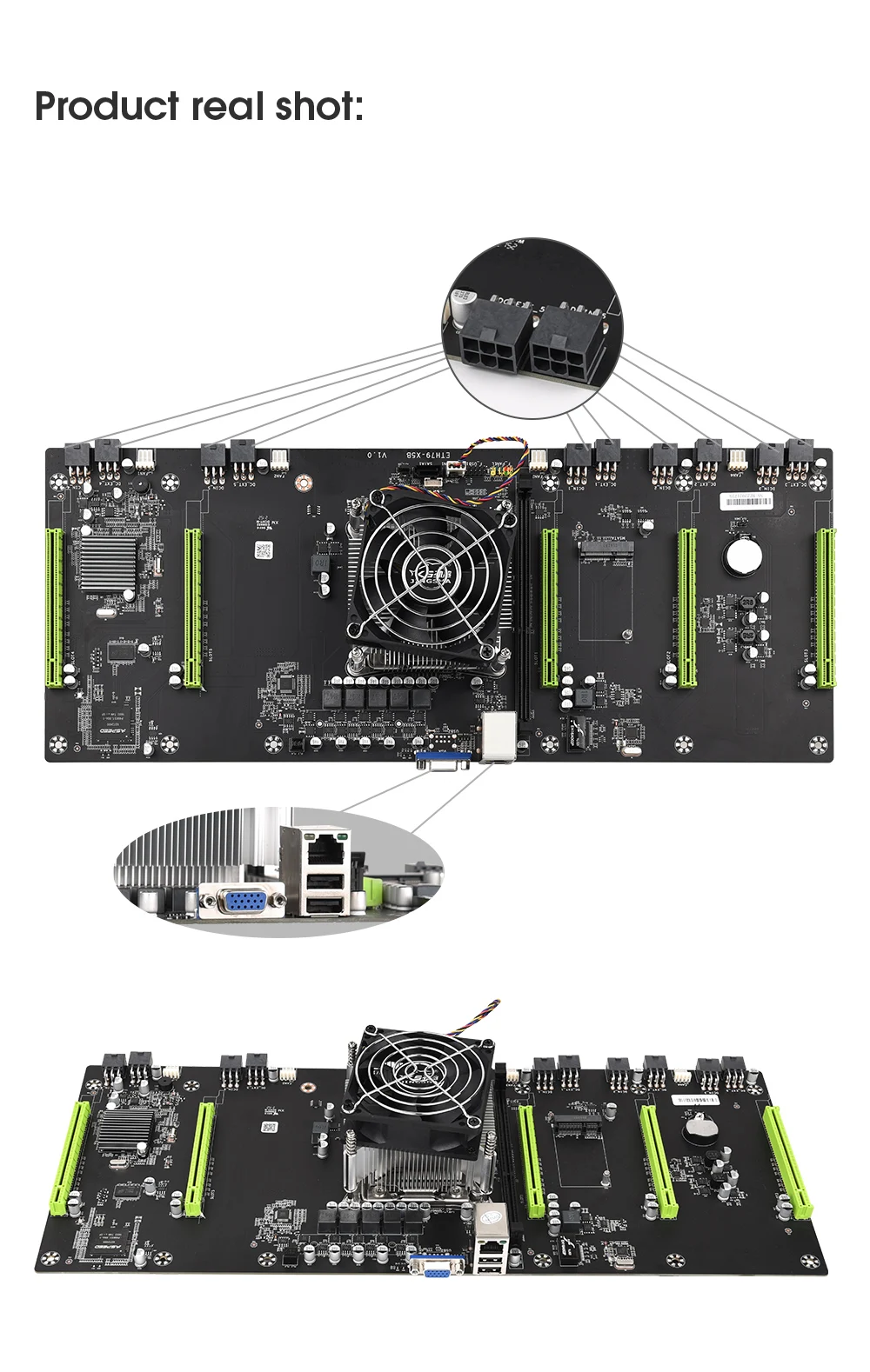 1 *ETH79-X5B материнская плата для майнинга1 * встроенный процессор XEON E5 26XX1 * Вентилятор охлаждения процессораКомплексное тестирование перед отправкойИнтервал слота: 80 мм