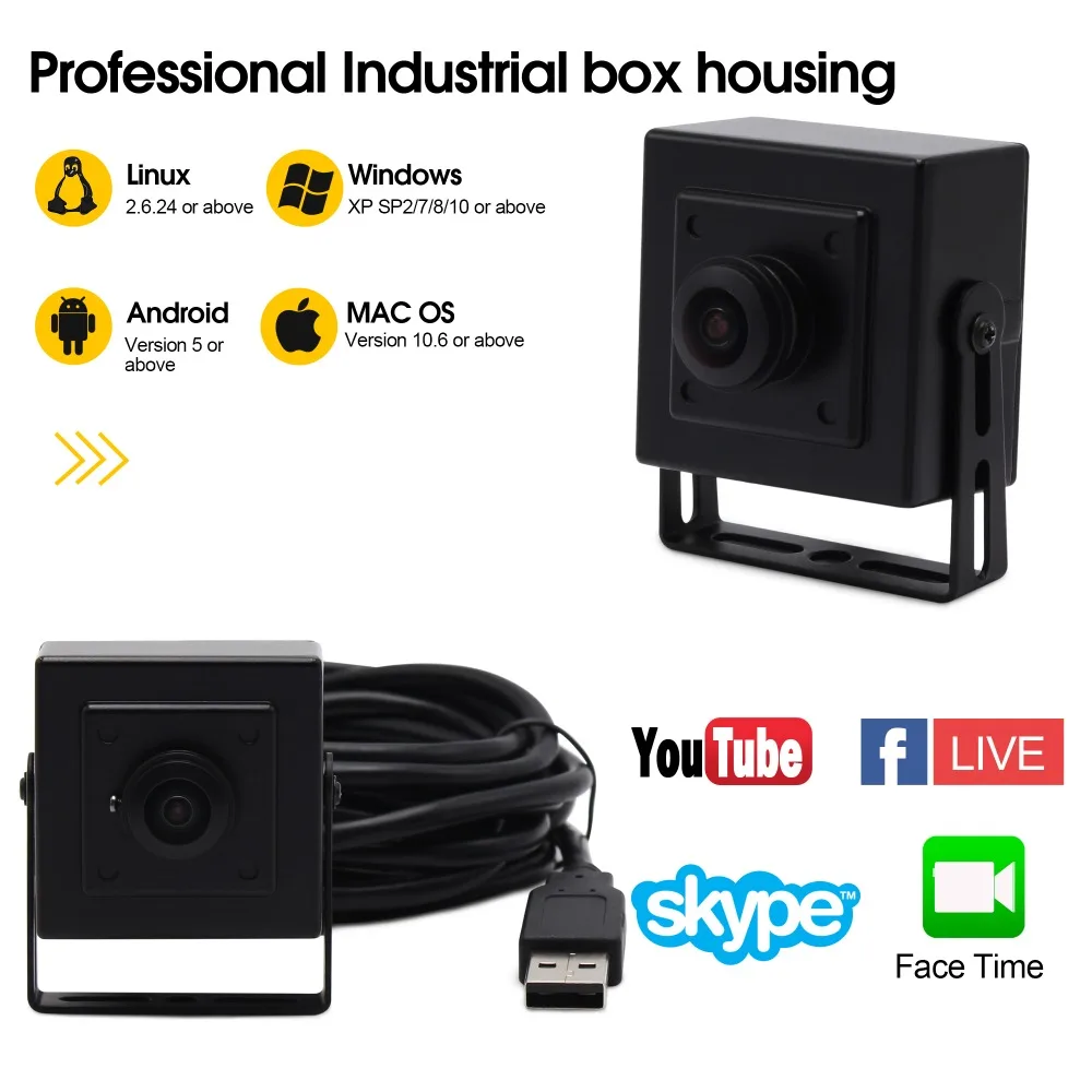 ELP 5MP 2592*1944 HD High Speed 30fps@1080P 180degree Fisheye Lens USB Camera CCTV Mini box Wide Angle USB Webcam for PC Laptop
