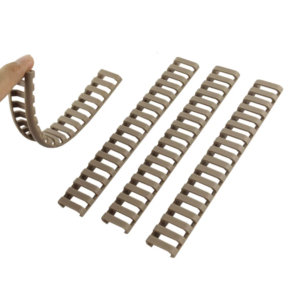 Особенности: Защелкивающаяся конструкция для легкой установки. При условии, удобный и приятный на ощупь трикотаж. Защищает рельсы от повреждений и защищает оператора от острых краев рельсов. Этот товар используется для чехлов, протекторов, прокладок и других дополнительных рельсовых приспособлений. Изготовлен из высококачественного термостойкого полимера высокой плотности. Прочный облегченной конструкцией. Совместим с рельсами Picatinny / Weaver Длина: 178 мм с 18 слотами.