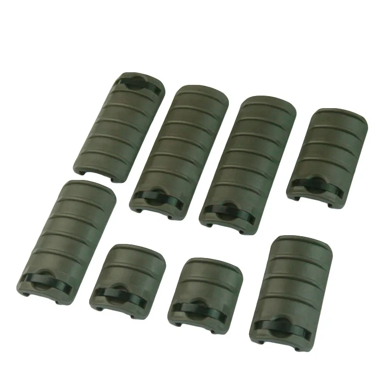 Характеристика: Изготовлен из полимерного материала -Подходит для 20 мм Вивера Пикатинни -В комплекте 8 чехлов для рельсов -Цвет: черный/DE/FG