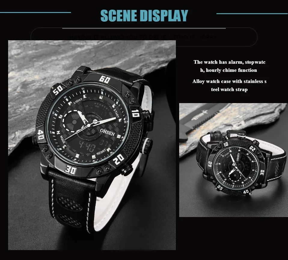 Digital display: Hour, minute, second, pm, month, date, day
