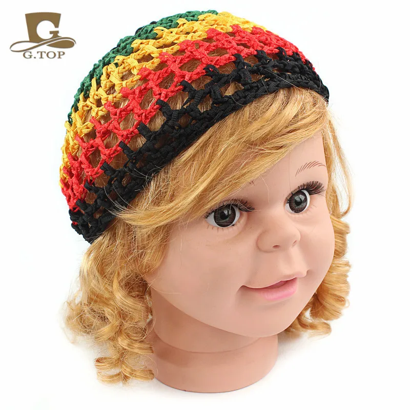 Новая модная детская сетка для волос Rasta Kufi, вязаная крючком сетчатая Кепка, бесплатная доставка