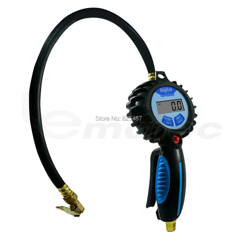 Технические характеристики * Материал: АБС-пластик с термопластичной пленкой, легкий * Рабочее давление: 90 PSI. * Диапазон давления: 0 ~ 200 PSI, 0 ~ 13,7 бар, 0 ~ 1378 кПа, 0 ~ 14 кг/см2 * Автоматическое отключение: Да, экономия заряда батареи * Воздушный поток на 100 PSI:16 CFM * Воздухозаборник: 1/4 дюйма * Длина шланга: 50 см * ЖК-подсветка: Да 100% новый и высокое качество. Цифровой шинный инфлятор с простым в считывании циферблатом, зажимным патроном. С кнопкой спуска воздуха, для снижения давления в надутых шинах. Гибкий шланг для более легкого и удобного использования. Функции и особенности: Датчик давления на входе и электронные компоненты ЖК-дисплей с голубой подсветкой, легко читается Функция автоматического отключения питания Подходящий магазин шин, автомобильные салоны красоты, четыре станции Применимые модели: мотоцикл, автомобиль, автобус, грузовик
