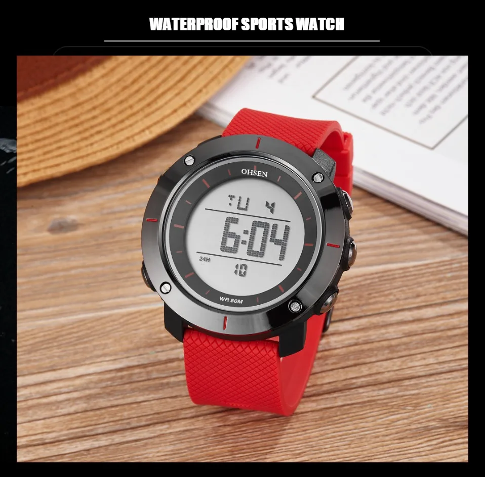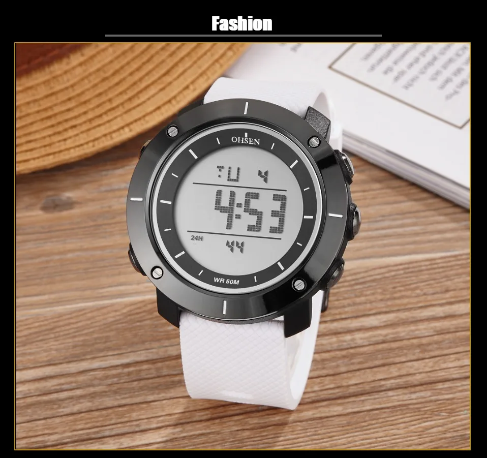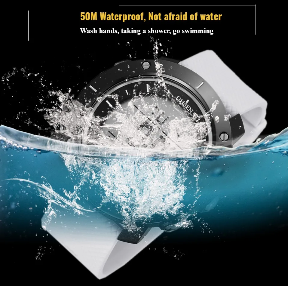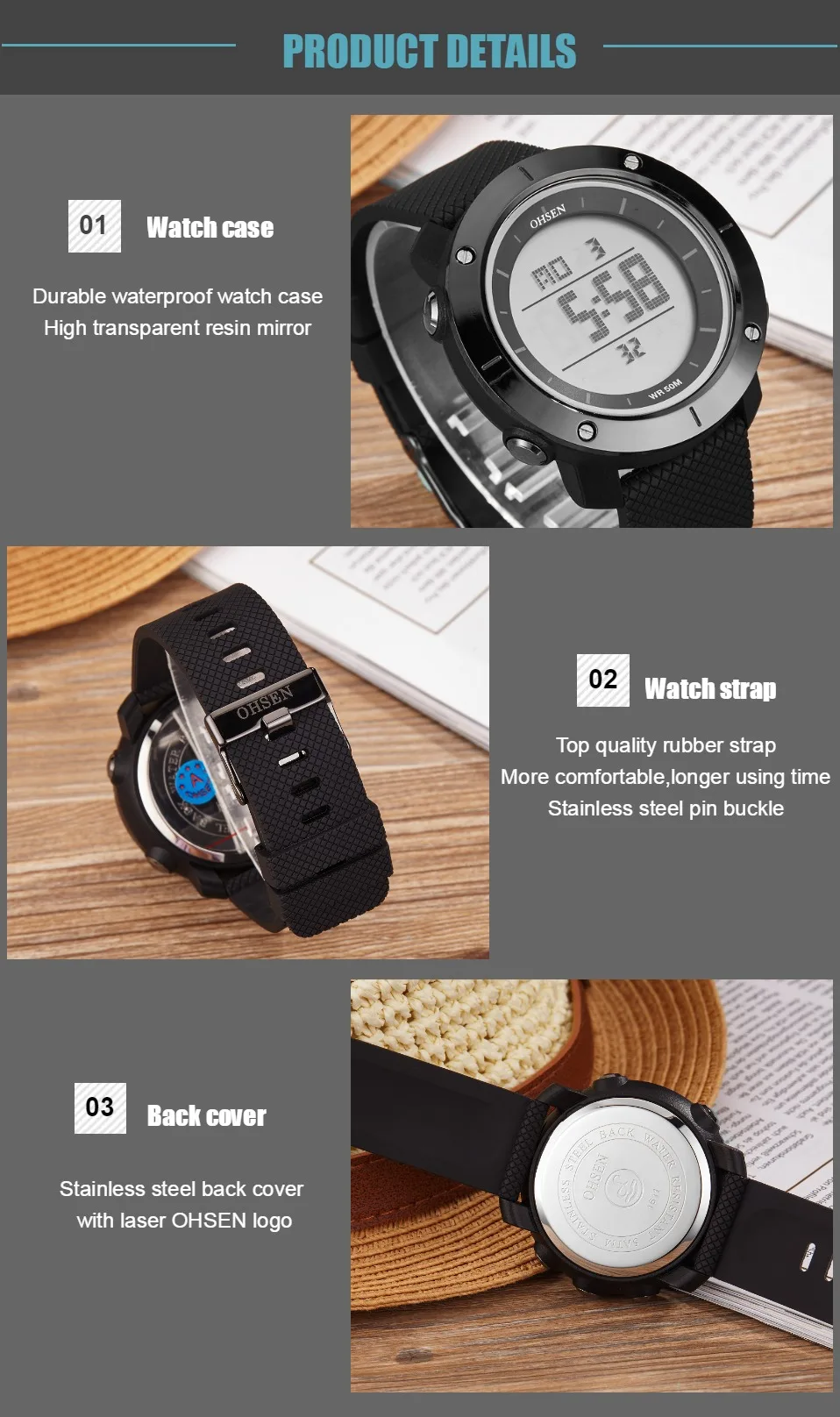 Japan Maxell button cell, longer life time Stainless Steel Back cover with laser OHSEN logo Good quality Rubber strap, More comfortable