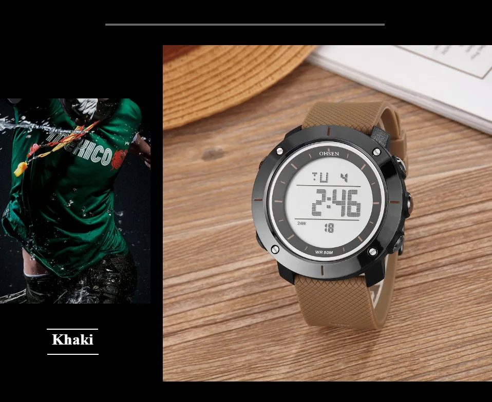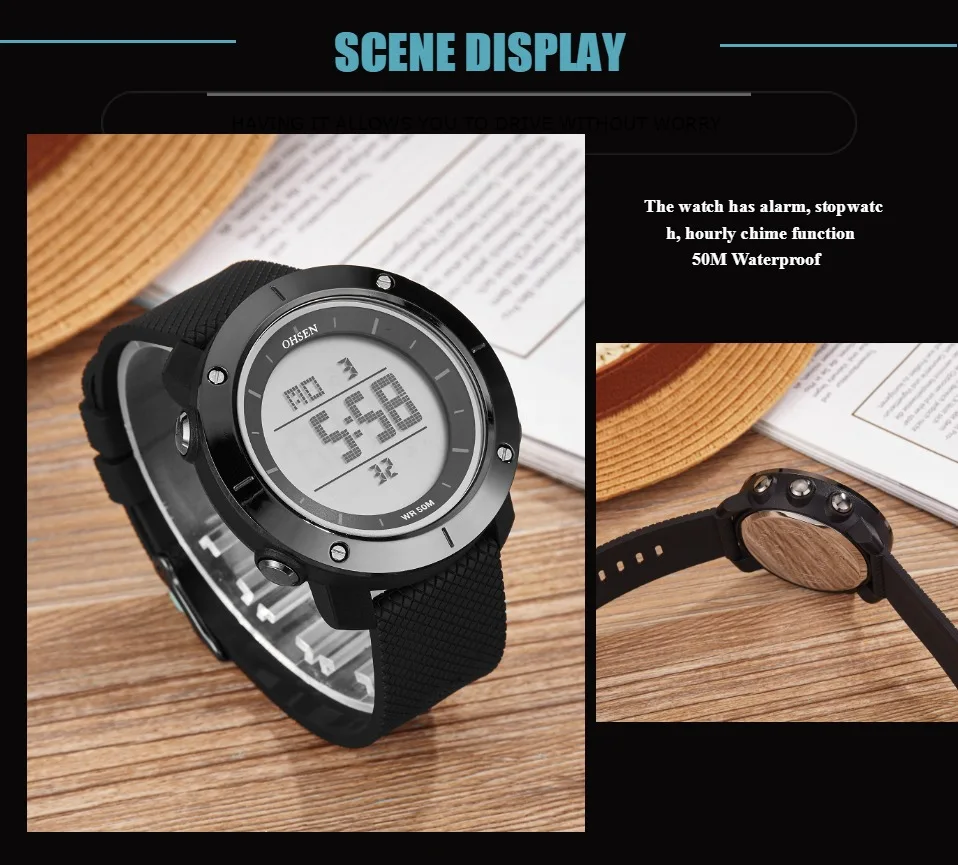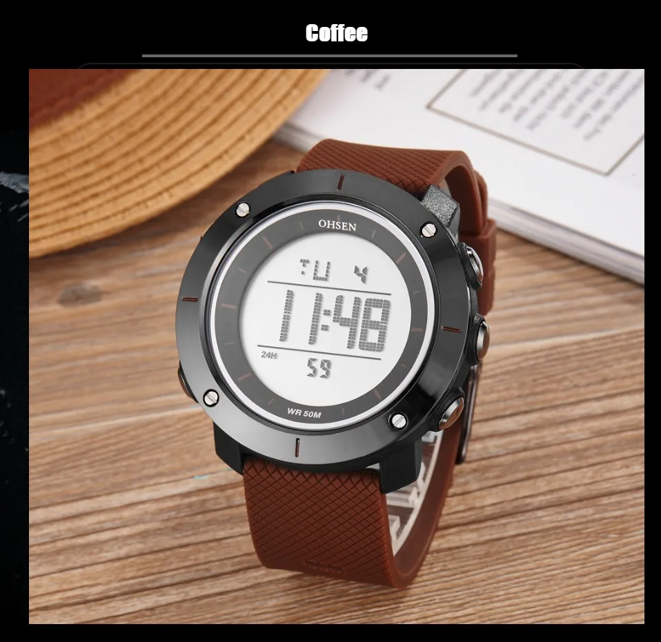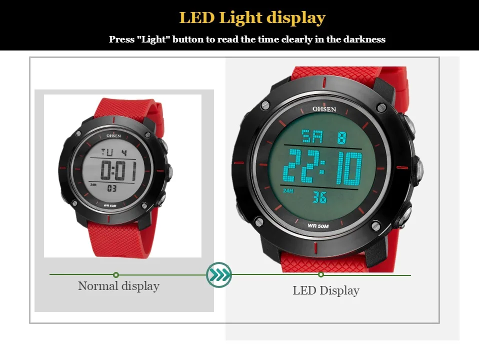 Japan Maxell button cell, longer life time Stainless Steel Back cover with laser OHSEN logo Good quality Rubber strap, More comfortable
