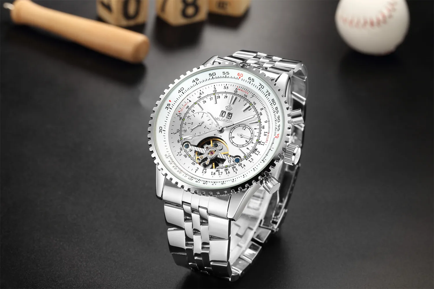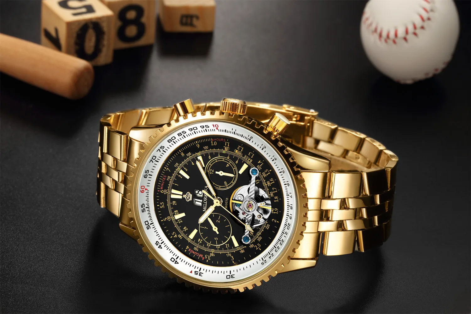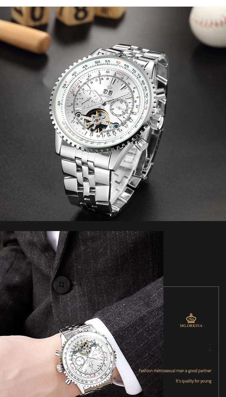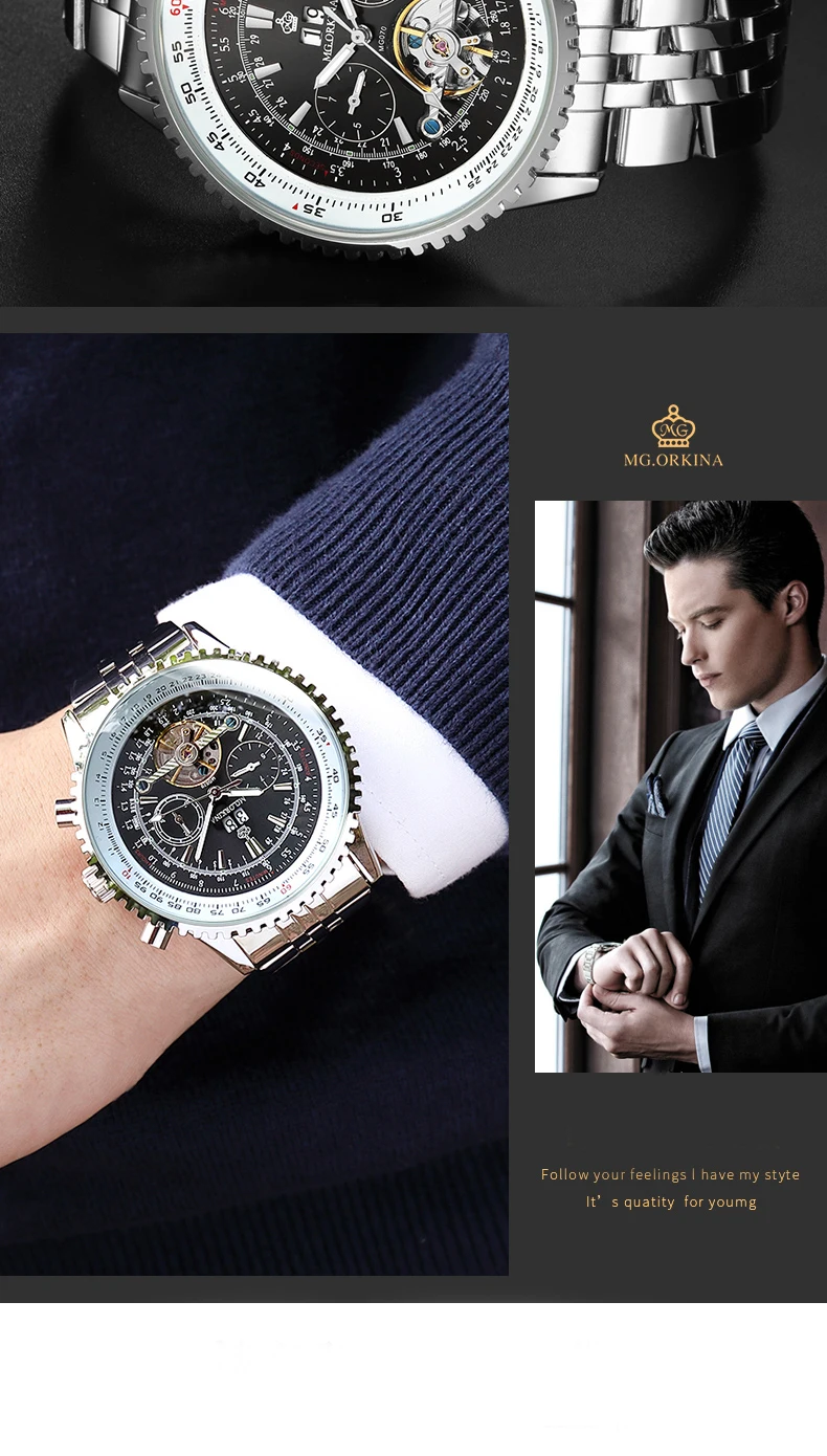 Известный бренд ORKINA золотые часы Для мужчин Нержавеющая сталь автоматические механические часы Летающий часы с турбийоном Теплые Примечания: -Механические часы позволяют время +- 2 минуты в течение 24 часов -Во избежание повреждения часов во время регулировки, пожалуйста, вытяните и перемещайте регулировочную руку до тех пор, пока часовая стрелка не пробежит хотя бы один круг и не будет оставаться между 1:00-3:00, прежде чем размещать какой-либо промежуточный циферблат, например, дату или день. -Пожалуйста, не забудьте изменить дату после 31, так как она появится 32, даже 39 Особенности: 100% новый бренд и высокого качества Дата, неделя, месяц Самоходный механический механизм ветра Посылка включает в себя: Часы 1xMG.orkina Предложения по использованию механических часов: Автоматический механизм часов энергии от движения пользователя руки. Поэтому вам не нужно вручную наматывать часы под обычный чехол. Возможно, потребуется ручная намотка из-за того, что физическая активность пользователя не достаточно, чтобы управлять часами. Пожалуйста, убедитесь, что заводная головка поворачивается менее 20 кругов.