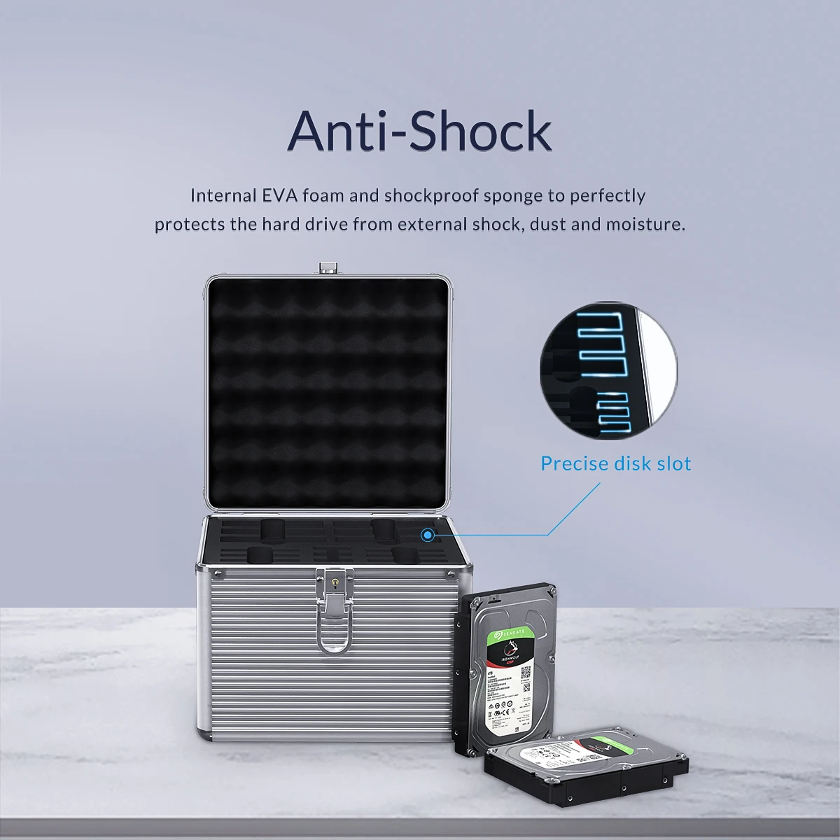 Твердое шасси из алюминиевый сплав и толстая подложка из вспененного каучука ударопрочный губки подкладка защищает вашу жесткие диски от воздействия и шокирующие случайно.