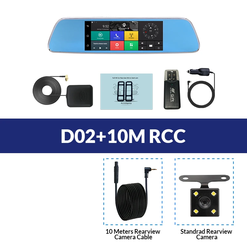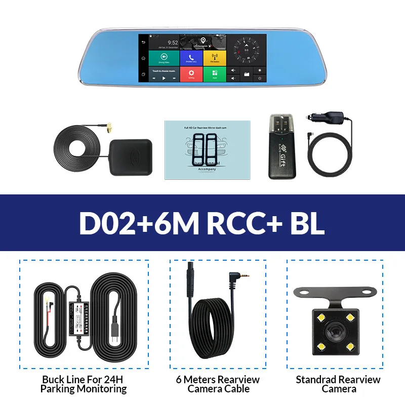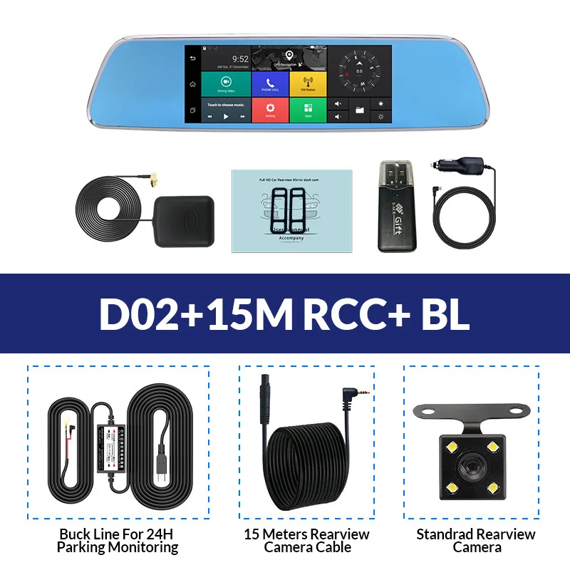 Особенности и технические характеристики Тип установки Зеркало заднего вида, подходит для всех транспортных средств с зеркалом Размер экрана (дисплея) 7 дюймов сенсорный экран Чипсет (процессор/ЦП) MTK6582(D02), Оперативная память ОЗУ: 1G; ПЗУ: 16G(D02) Система Android 5,0 (D02) Очиститель датчика камеры Передняя 2 Мп + Задняя 1 МП Объектив камеры Передняя + задняя; 6 стекла + 4 стекла; угол 170 градусов + угол 140 градусов; Диафрагма F2.2 + диафрагма F2.2 Разрешение видео D02 фронтальная: 1920*1080P @ 30 кадров в секунду; Задняя: 720*480P @ 25 кадров в секунду Разрешение фотографий Размеры от 12 мес. Кодировка видео H.264 GPS навигация Поддержка (D02) Две SIM карты сети Поддержка (3G/WCDMA: 2100(B1); 2G/GSM: 900(B8)/ 1800(B3)) WIFI Поддержка (D02) Bluetooth Поддержка (D02) Батарея Встроенный (встроенный аккумулятор очень маленький, не может поддерживать работу, только для экономии времени, пожалуйста, используйте оригинальное зарядное устройство при работе) Языки экранного меню Английский, русский, китайский, японский, корейский и т. Д. (Если вы хотите другие языки, сообщите нам, мы поможем вам добавить его) Основные характеристики G-сенсор, циклическая запись, обнаружение движения, монитор парковки, отображение времени, широкий динамический диапазон, отображение изображения в картинке, Автоматическое включение/выключение Слот для карт памяти Карта Micro SD, класс 10 и 8 Гб до 32 Гб (не входит в комплект) Автомобильная камера заднего вида обновления Поддержка Макс 15 метров кабель камеры заднего вида Добавлять новые функции С функцией ночного видения, FM Больше функций Скоро в продаже ..... Упаковочный лист Основные: 1 х упаковочная коробкаОсновные функции