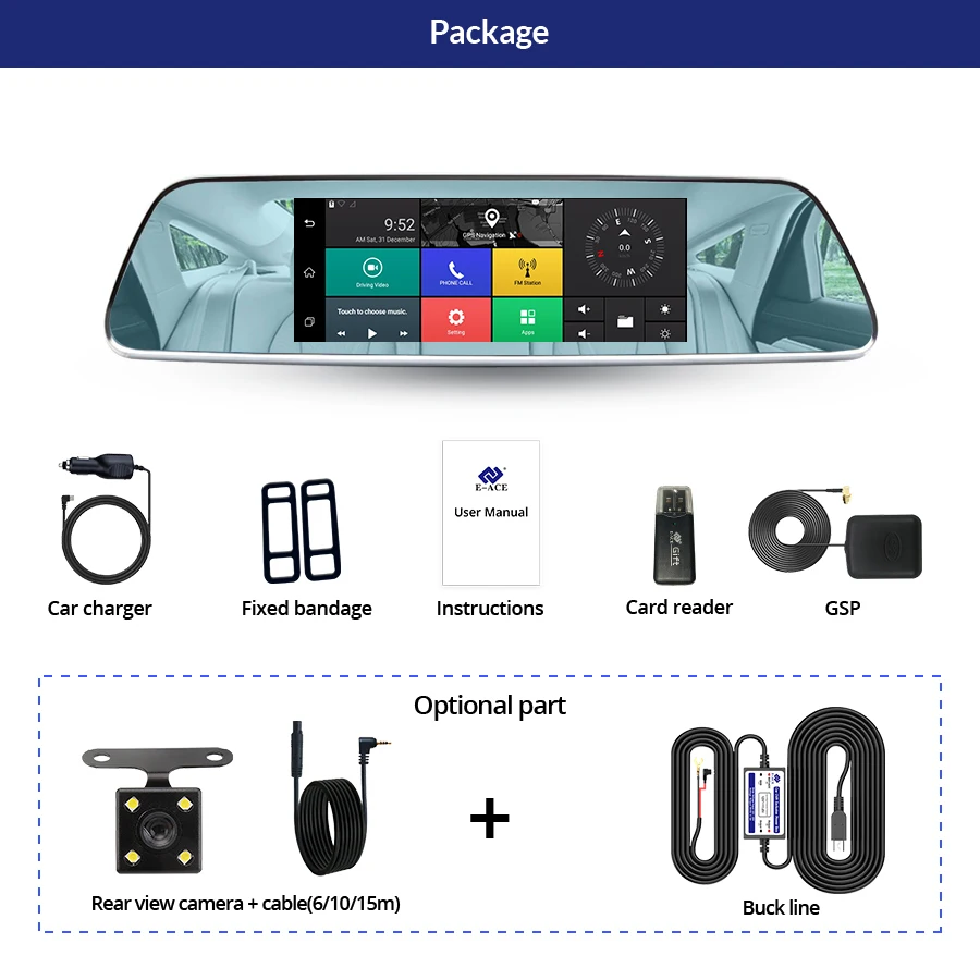 Встроенный 1 Гб оперативной памяти DDR3 и встроенной памяти 16 Гб, поддержка Google Play Store и предустановленный, это cou ld доступ к миллионам бесплатных и платных приложений, доступных для загрузки прямо на зеркало dvr