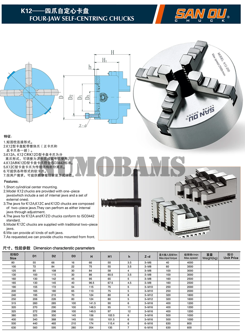 K12-130 4 кулачковый Самоцентрирующийся патрон