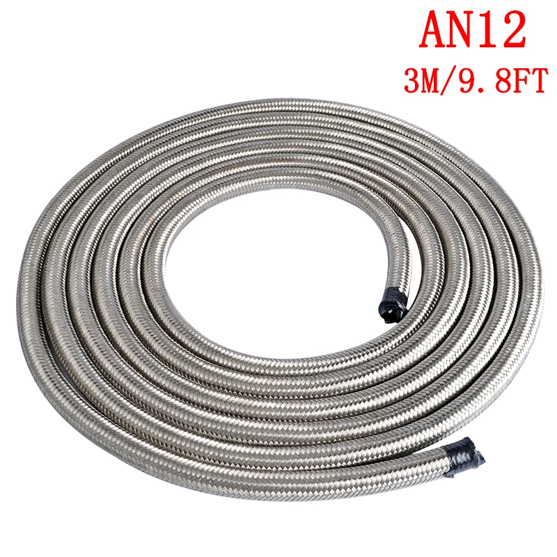 10 футов AN12-12 Универсальный Масляный шланг из нержавеющей стали с оплеткой Масляный шланг масляный охладитель шланг адаптер Масляный шланг линия Серебряный шланг