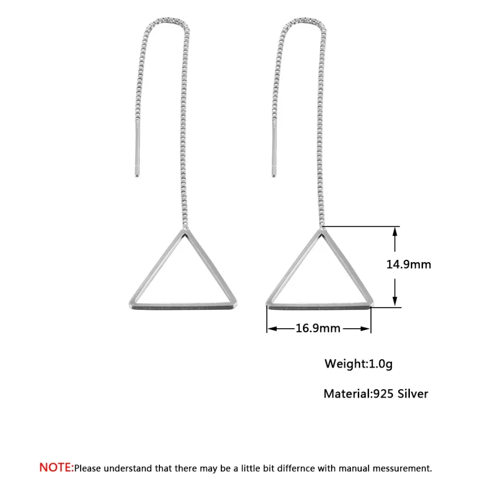 Женские длинные висячие треугольные серьги из стерлингового серебра 925 пробы с простой геометрической подвеской