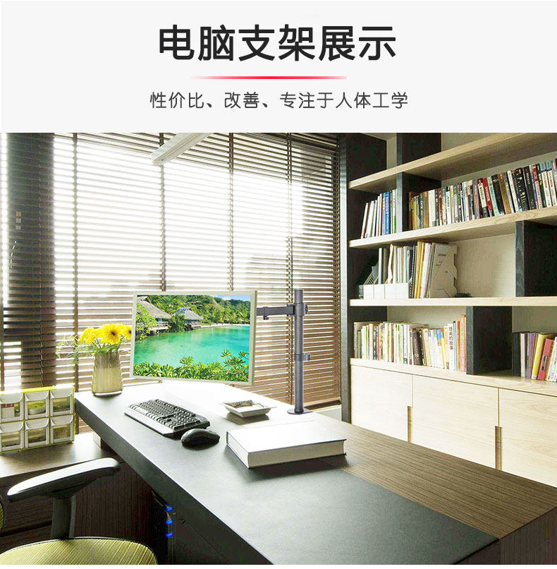 Номер модели: DS-MD6421 Материал: сталь холодной прокатки SPCC Рекомендуемый размер экрана: 10 "-27" VESA: 75x7 5 мм/100x100мм Макс. Загрузка: 9,9 кг Вращение головы: 360 градусов Наклон головы: -90 ~ + 90 градусов Головка крошечные шарнирного соединения Шарнирное соединение: 180 градусов на каждом шарнире Свободный подъем: 35 см Два способа установки: крепежная Втулка и Настольный зажим Толщина стола: 0-10 см