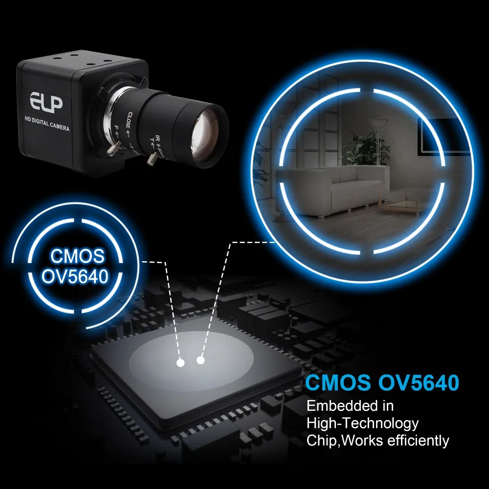 HD 5 мегапиксельная USB cmos-плата модуль камеры принимает HD объектив, который отвечает этим программа должны видеть все виды расстояния. Он идеально подходит для многих приложений, таких как системы безопасности, портативные видеосистемы, видеотелефоны, мониторинг промышленных машин и игрушки. Он использует высококачественный датчик изображения, сделанный OmniVision OV5640, одним из мировых лидеров в этой области электроники.