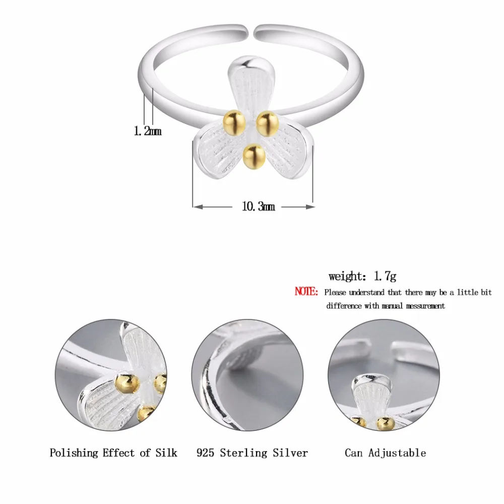 925s-sterling-серебристое двойное регулируемое Открытое кольцо с золотым цветком для женщин и девочек, Брендовое высококачественное женское ювелирное изделие Bijoux Fit PanUSD 3,39Долларов США/шт
