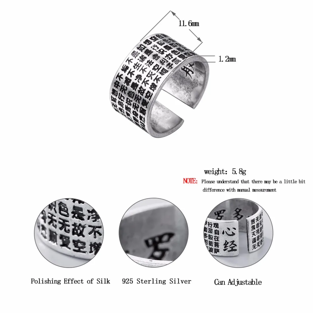 Чандлер 925 пробы Серебряное сердце Sutra китайские кольца с буквами энтические этические Будда мантра ювелирные изделия китайский стиль религиозный Mid Bague