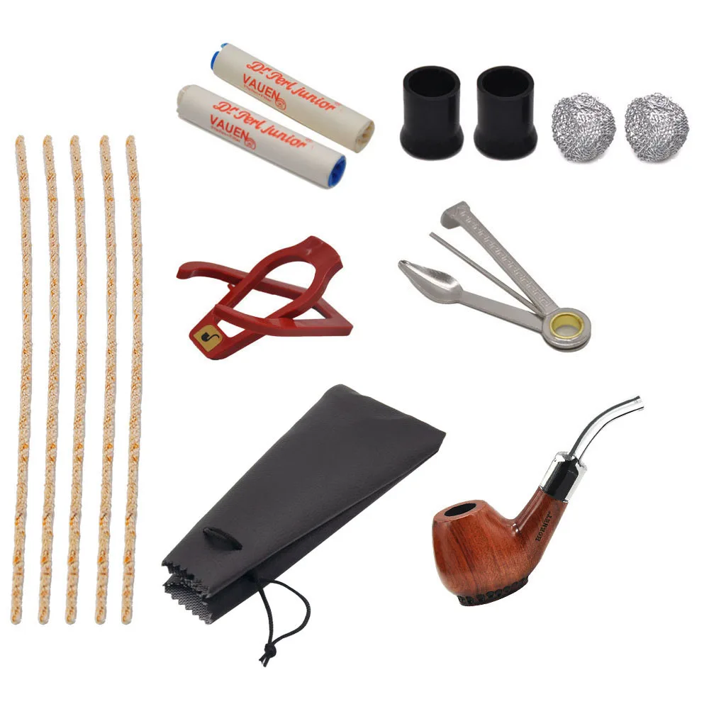 1 деревянная труба + 5 очистителей труб + 1 трубный нож + 2 металлических экрана + 2 наконечника для рта + 1 Подставка для труб + 1 сумка для труб