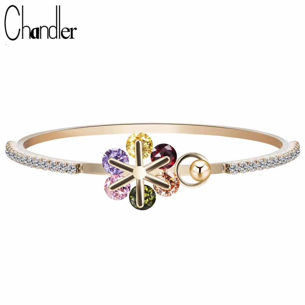 Chandler Классический многоцветный кристалл цветок Шарм браслет с прозрачным фианитом для женщин модные ювелирные изделия Femme Homme Лето Bijoux