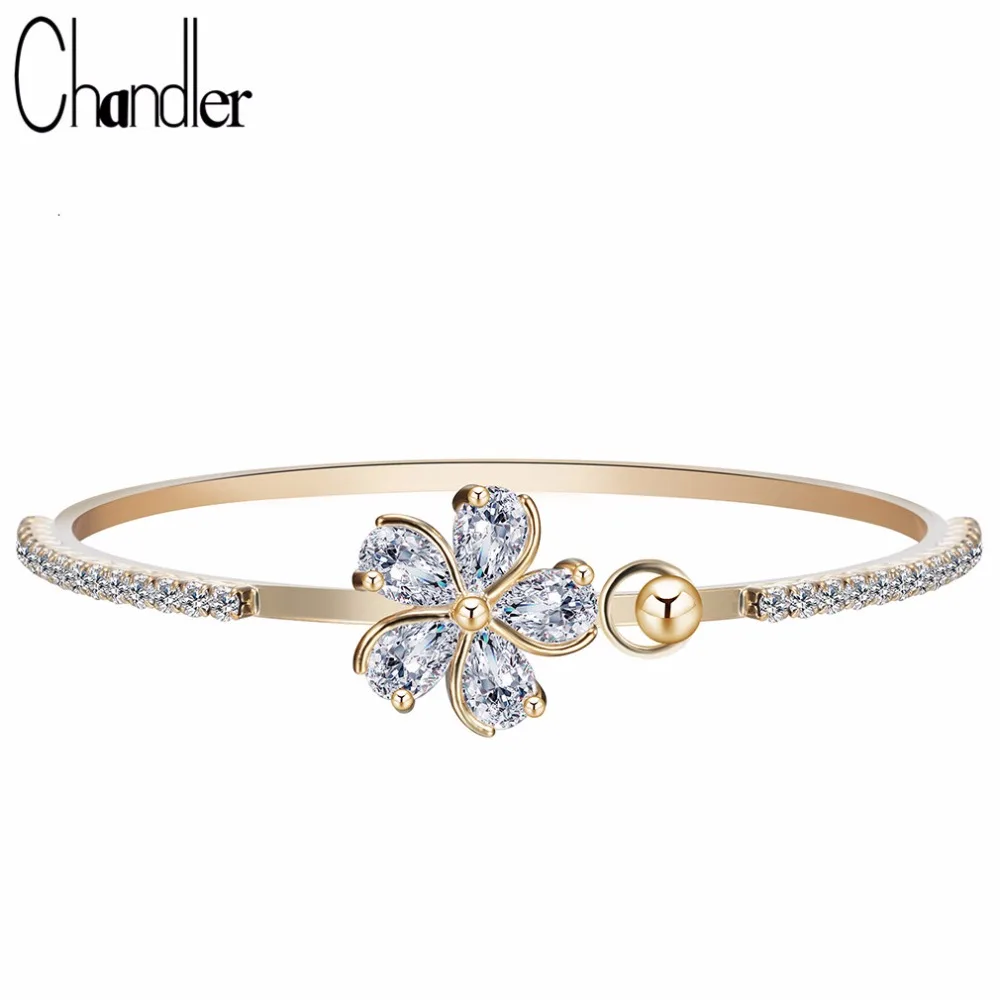 Chandler брендовые разноцветные стразы, Хрустальный цветок, очаровательный золотой цвет, браслет, Блестящий CZ горный хрусталь, европейский размер, браслеты Pa