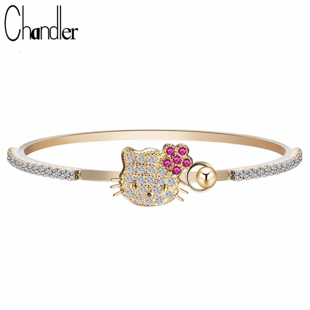 Чандлер Китти Кот чешский камень дамы браслет милые животные микро браслеты паве для женщин детей Feminino Largo ювелирные изделия оптом