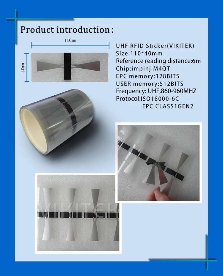 UHF RFID стикер анти-слезоточивый Водонепроницаемый солнцезащитный автомобиль фара этикетка 6c пассивное лобовое стекло тег 915 МГц Протокол: EPC класс 1 Gen2,ISO18000-6C Частота: UHF,860-960 МГц Характеристики: анти-слезоточивый, водонепроницаемый, солнцезащитный Размер: 110*40 мм Чип: Impinj Monza4QT Память EPC: 128 бит Память пользователя: 512 бит Приблизительное расстояние чтения: 6 м