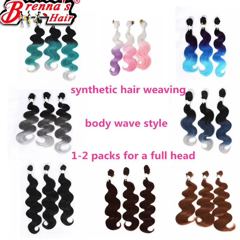 2017 новые синтетические бразильские волосы для наращивания волос с закрытием и зажимом Одна упаковка содержит: 3 пучка волн тела Длина складывания: Мы предоставляем 14 дюймов 16 дюймов 18 дюймов 20 дюймов 22 дюйма 200 грамм в упаковке 1 упаковка для полной головки Двухтонный Омбре цвет Синтетические волосы волнистые волосы, для придания объема