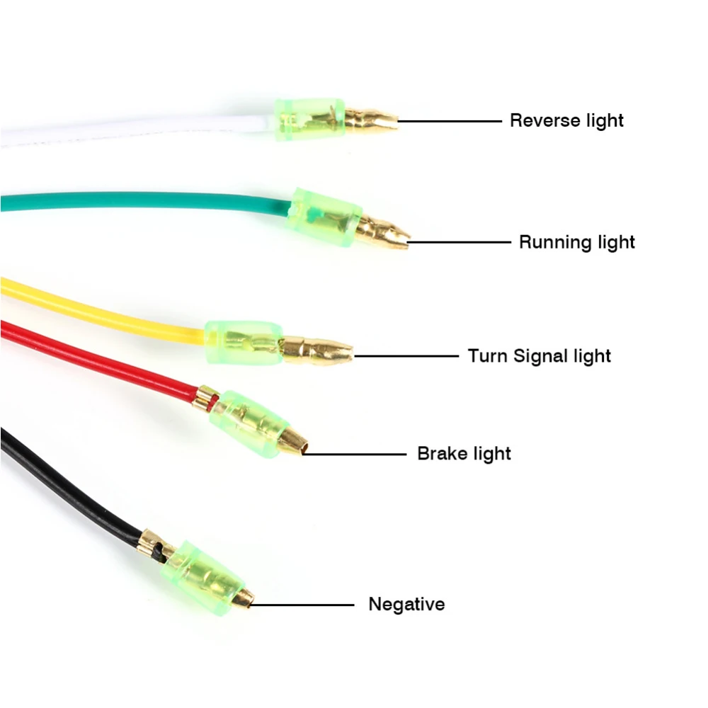 Function: 5-wire -- negative, brake light, tail light, indicator, reversing.
