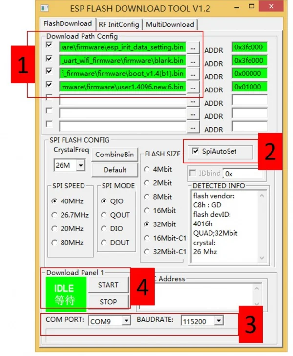 4 процедуры работыУбедитесь, что вы загрузили файл встроенного программного обеспечения, а также инструмент сжигания.