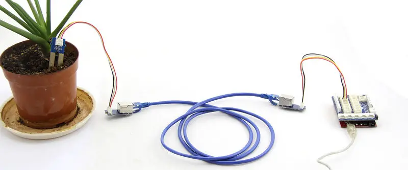 Если вы хотите использовать датчик влажности для обнаружения влаги в вашем саду в реальном времени, но вы не хотите лично ходить в сад. Как это сделать? Используя два адаптера RJ45 и длинный сетевой кабель, вы можете решить эту проблему. Установка оборудования должна быть: