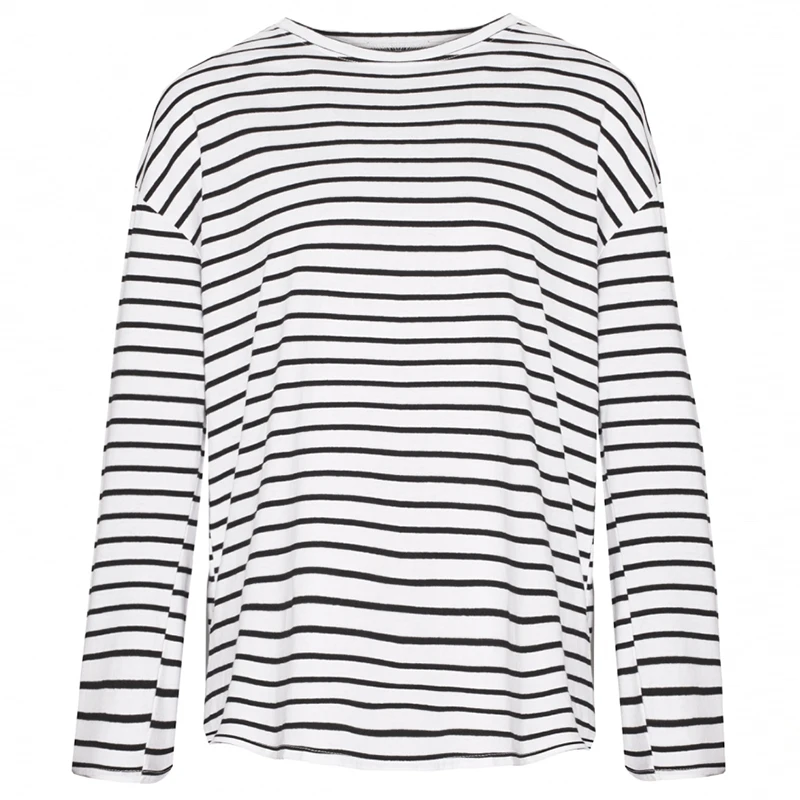 Футболки с длинным рукавом Женские полосатые с круглым вырезом Топы Футболки с разрезом рукав удобный тонкий причинно-следственная Футболка женская