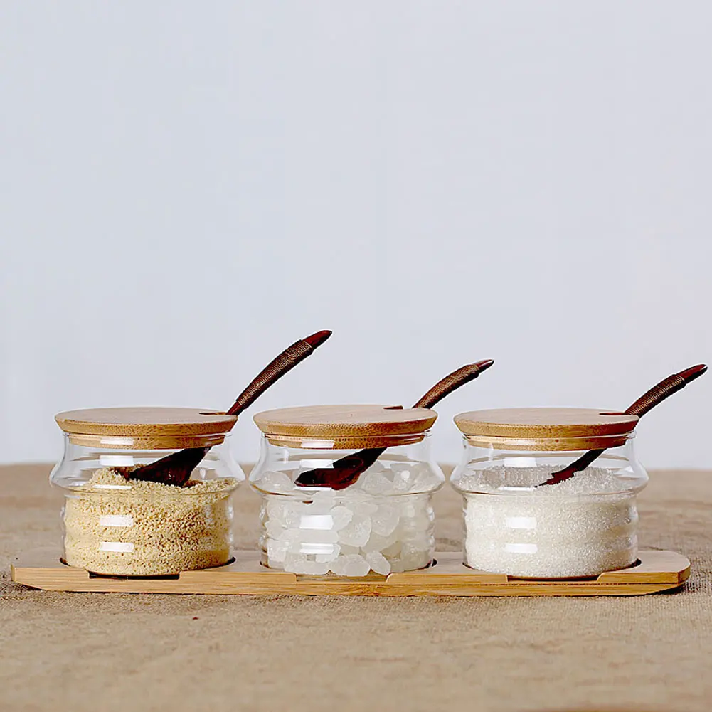 3 шт. бамбуковый чехол для специй баночки из стекла, приправы, коробка набор соли сахарный перец контейнер