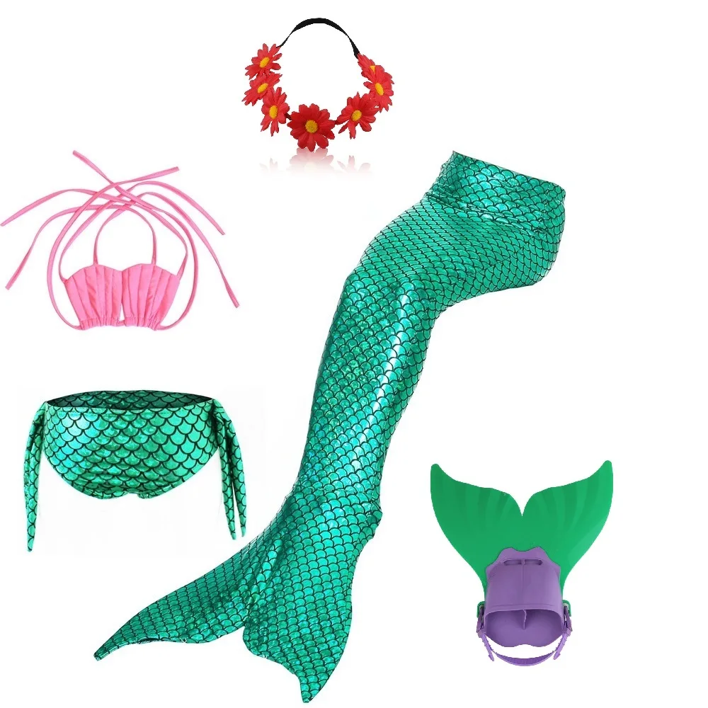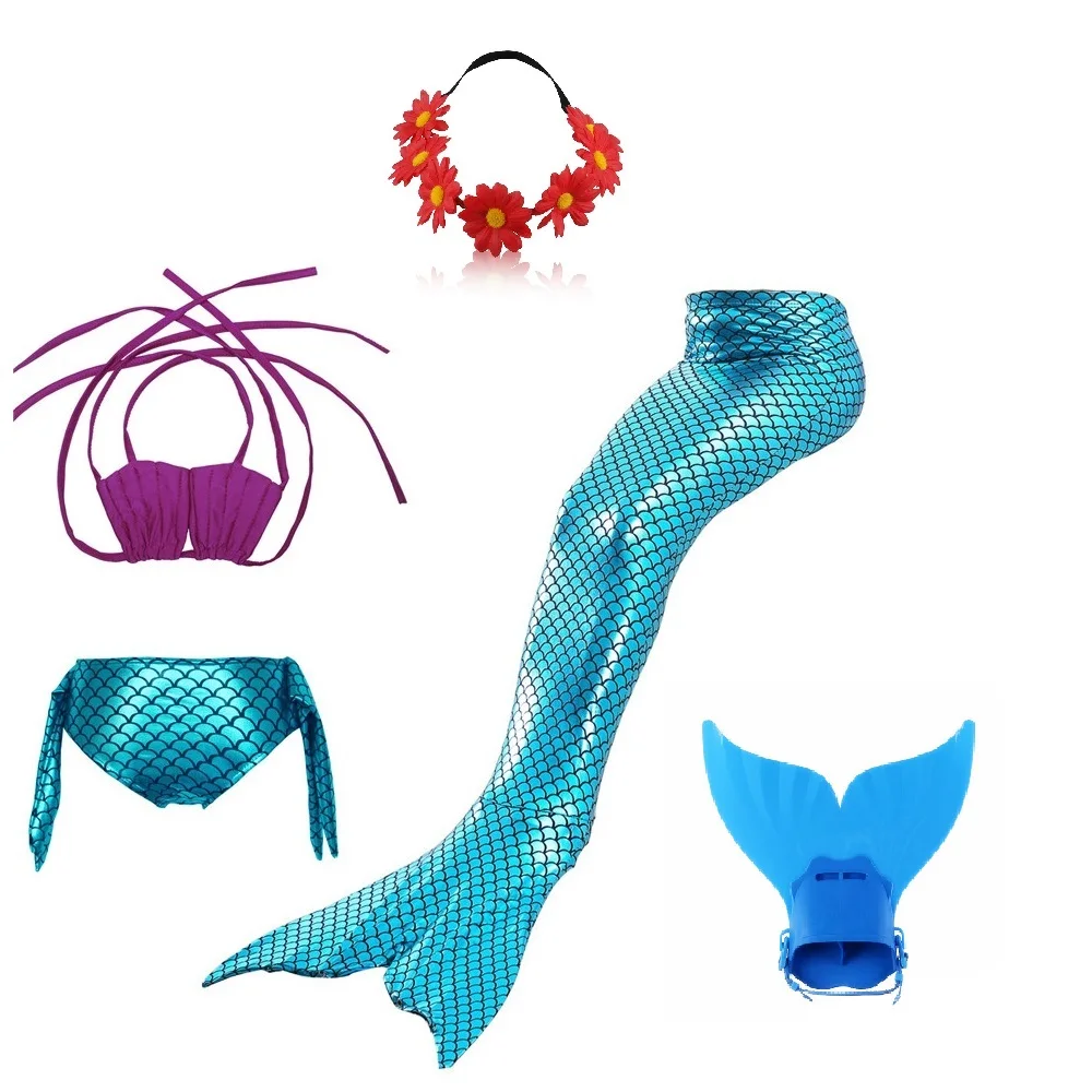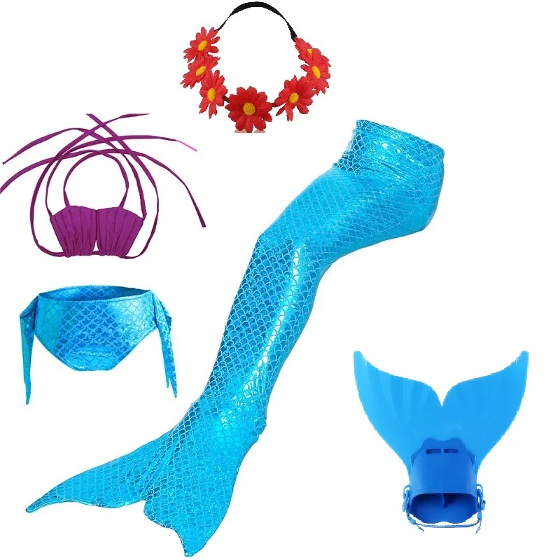 Включает: 1 * хвост русалки + 1 * бюстгальтер + 1 * шорты + 1 шт.Головной убор(ВключаяМонофин)