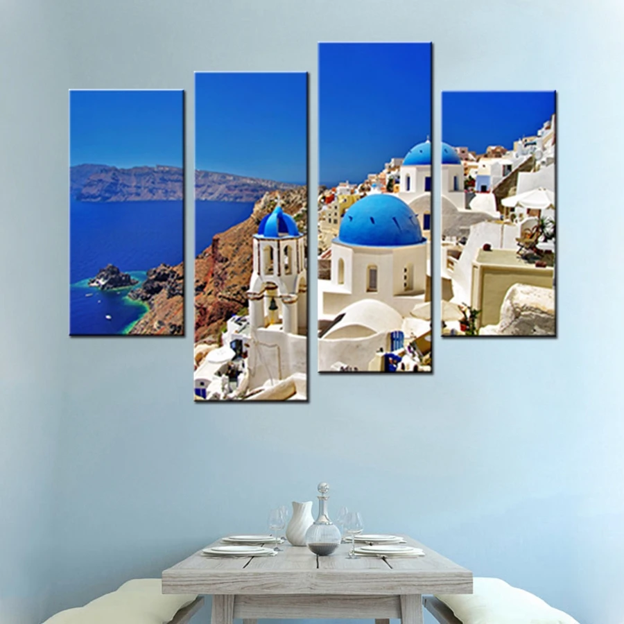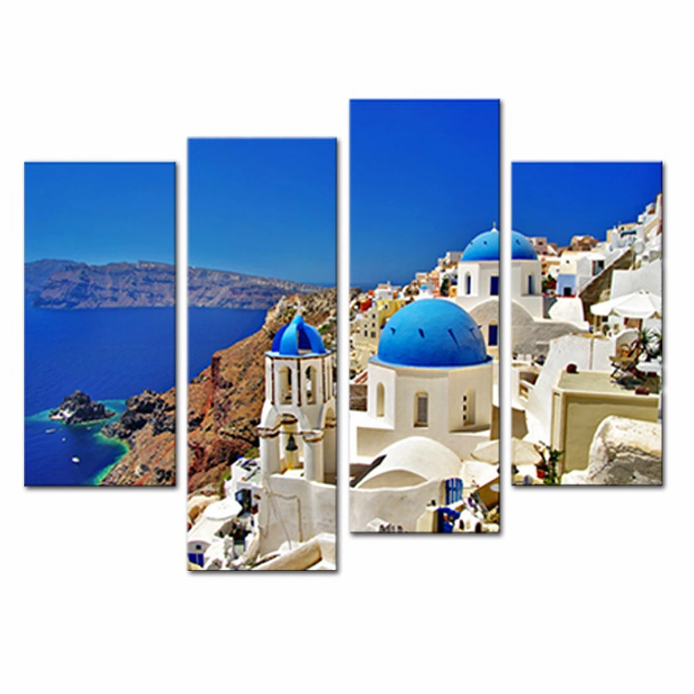 Лучший подарок, 4 панели, Картина на холсте, HD печать, Эгейский море, известный пейзаж, художественное изображение, настенное искусство для дома, украшение для отеля, Прямая поставка, оптовая продажа, на заказ