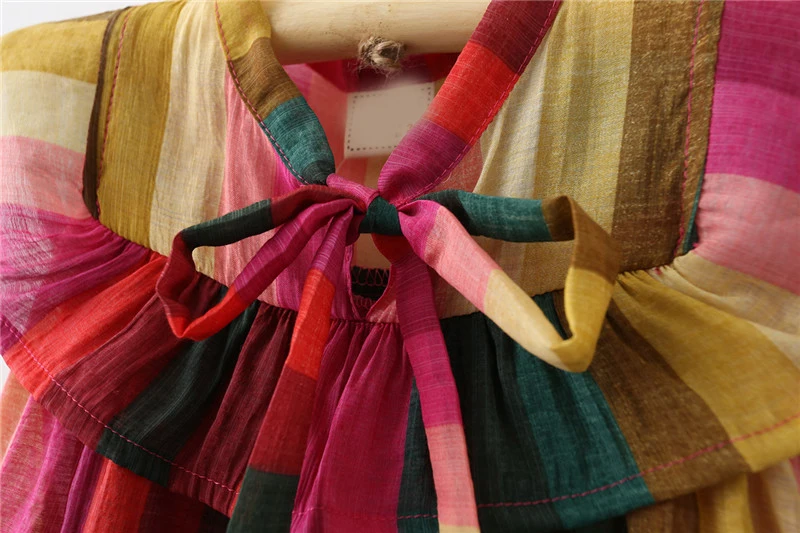 Футболки для девочек повседневные радужные Топы в полоску с отложным воротником для маленьких девочек, детская одежда, От 2 до 7 лет