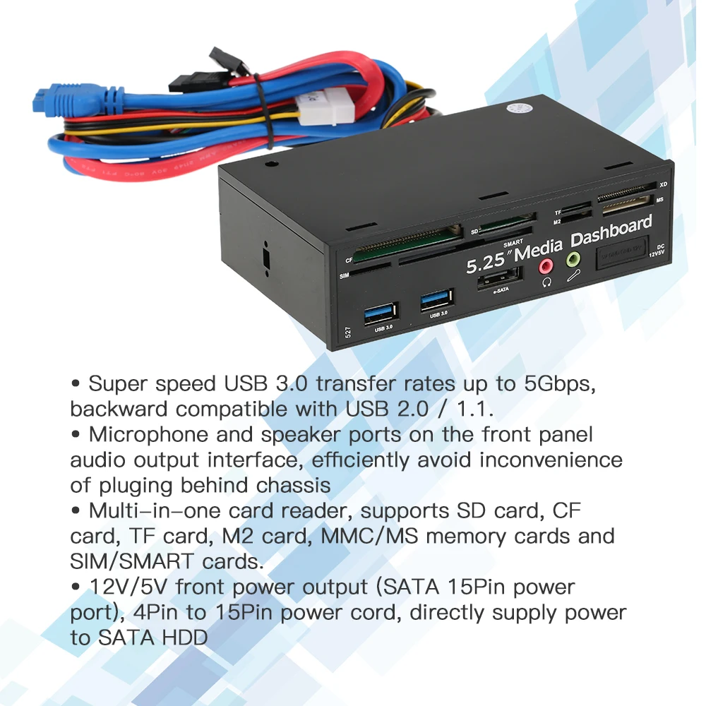 1*5,25 "Внутренний SATA e-SATA двойной USB 3,0 шесть USB 2,0 пять в одном кардридер многофункциональная Передняя панель медиа приборная панель