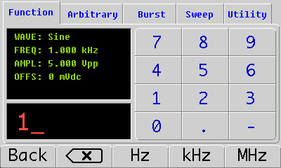 Стандартная форма волны: синус, квадрат, треугольник, подъем пилозуба, падение пилозуба, Синк, шум, геометрической подъем, геометрической падение, положительная полная волна, отрицательная полная волна, положительная полуволна, отрицательная полуволна, гауссиан, постоянный ток
