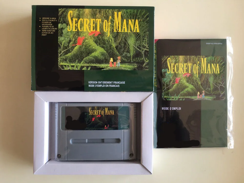 16 бит игр ** Secret of Mana 1 (версия PAL на французском языке! Коробка + руководство + картридж!)