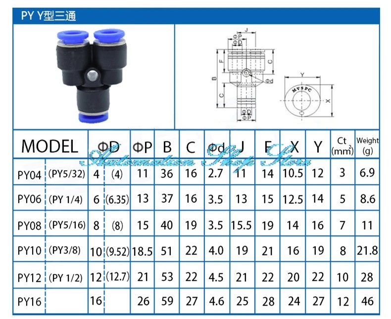 Название продукта: Пневматический Быстрый фитинг Модель: PY8 (y-тип) Дизайн: 3 Way Тип разъёма: 8 мм/0,31"Рабочее давление: 0 ~ 10.2kgf/cm2 (0 ~ 1.0Mpa) Отрицательное давление: -750 мм рт. Ст. (10 Torr) Диапазон рабочих температур: 0 ~ 60C Подходит для материала трубки: ПУ/нейлон, полиуретанМатериал: Пластик В комплекте: 5 шт.