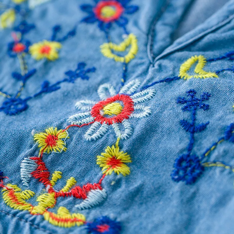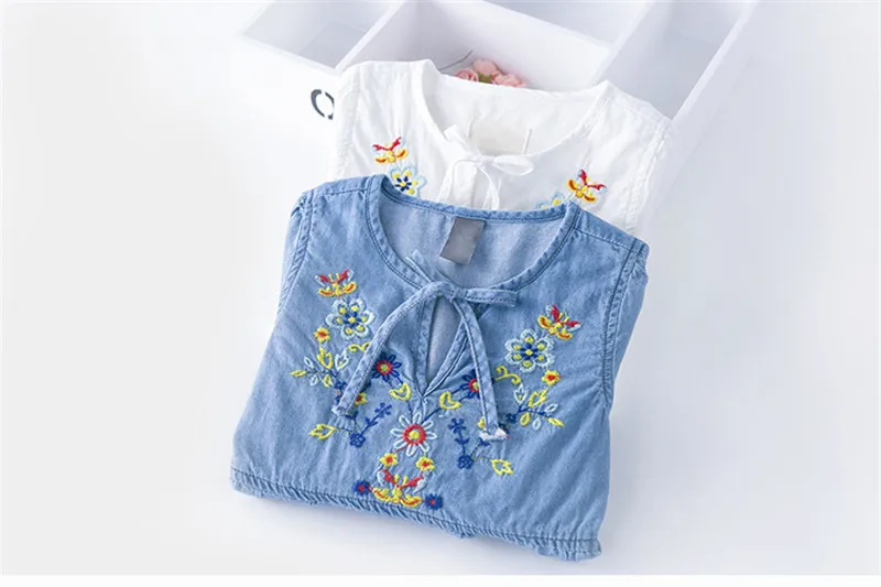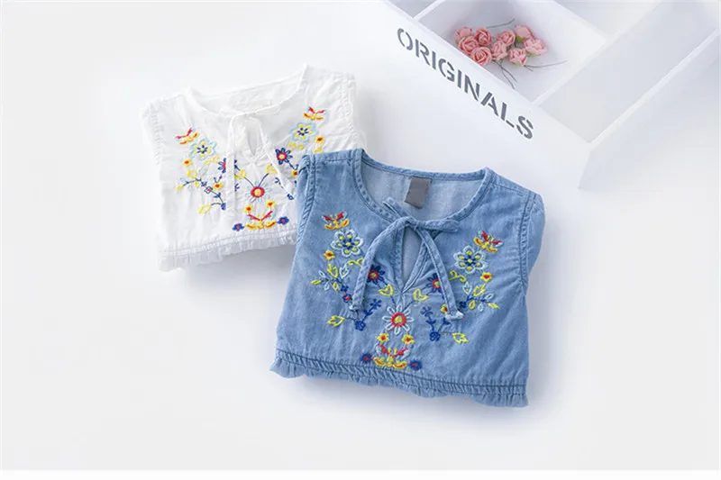 Осеннее хлопковое джинсовое платье с цветочным рисунком для маленьких девочек винтажные платья с цветочной вышивкой вечерние платья для малышей