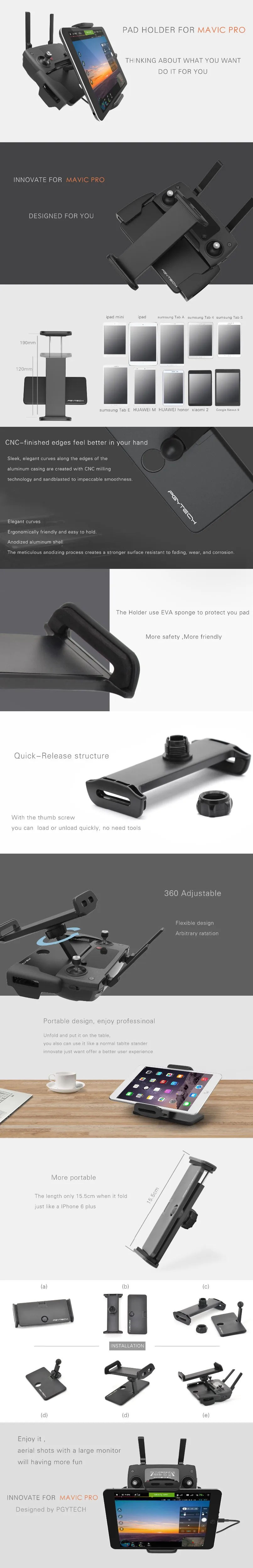 PGYTECH DJI Mavic Air Аксессуары Пульт дистанционного управления 7-10 Pad держатель плоский кронштейн для DJI Mavic Pro/Air комплектующие для Дронов