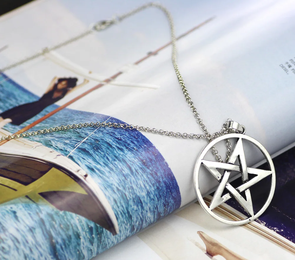Мужское ожерелье с подвеской серебряная пентаграмма звезда панк Рок Байкер-с 23 дюймовой цепочкой