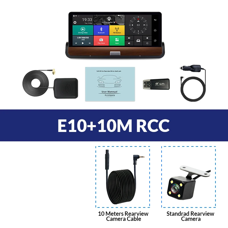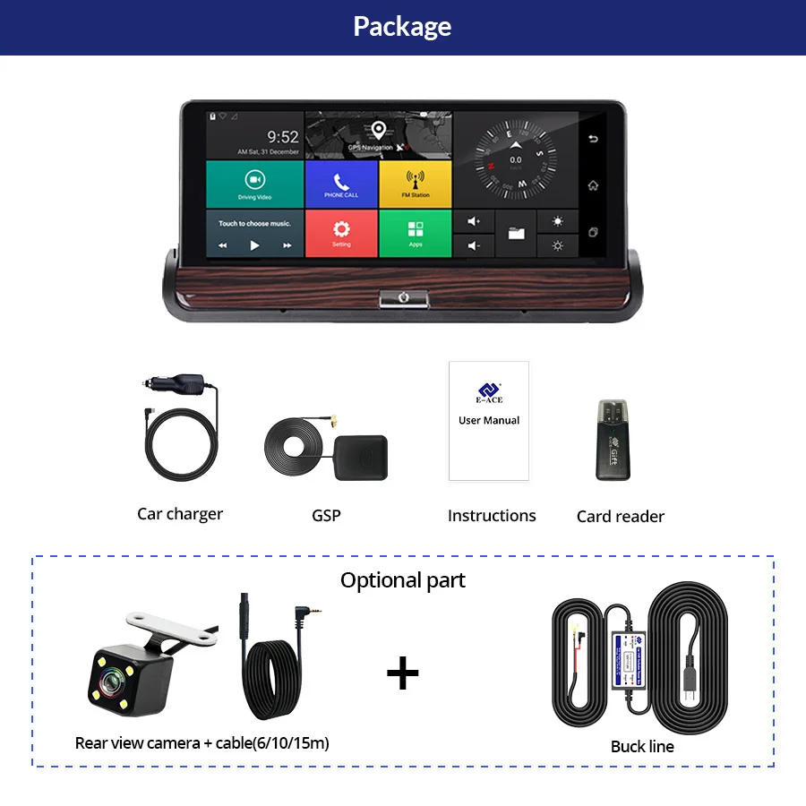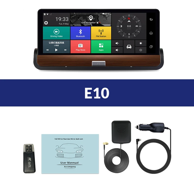 E-ACE Dashcam 3G Автомобильный видеорегистратор GPS Навигация 16G авто камера Android 7,0 дюймов зеркало заднего вида FHD 1080 P видео рекордер Wifi Bluetooth