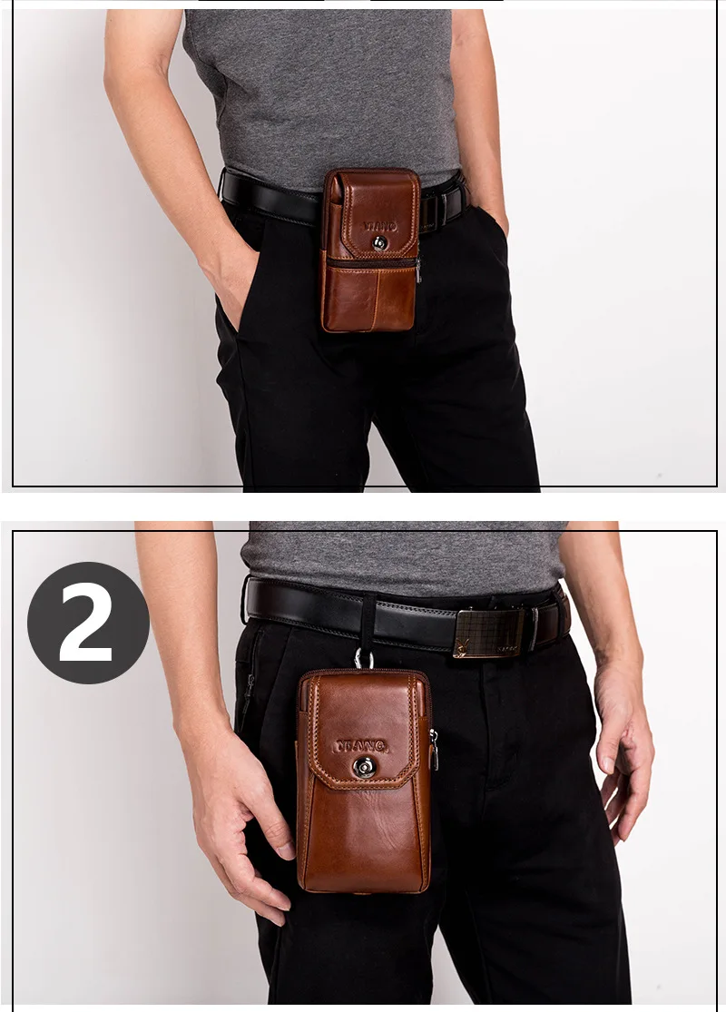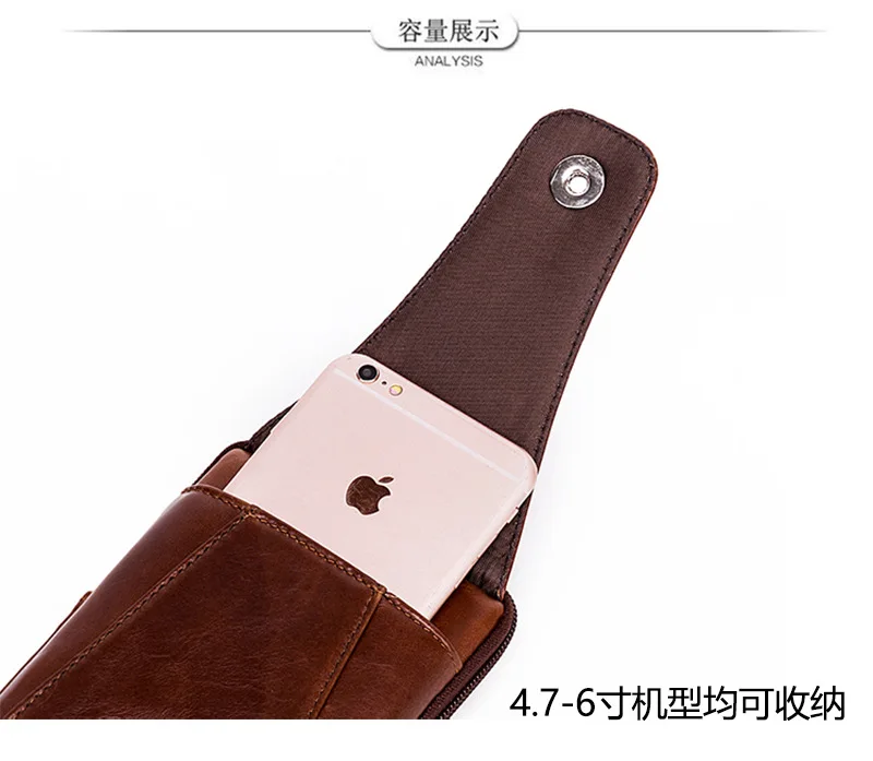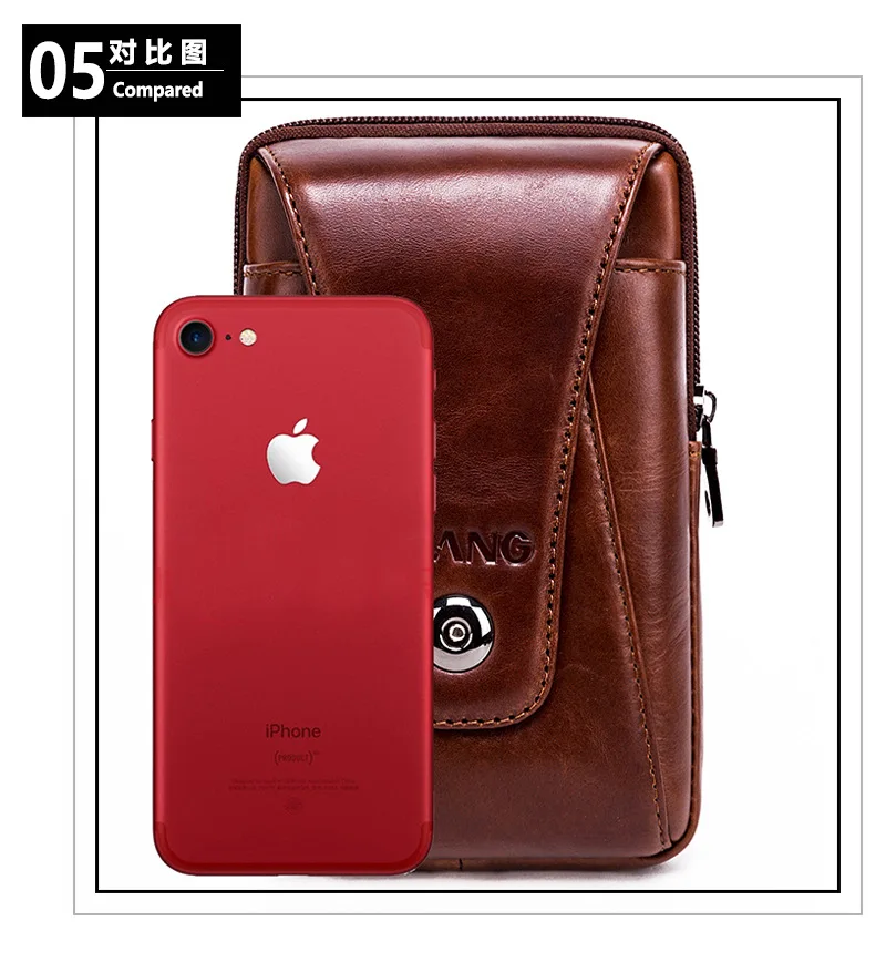 Стиль: поясная упаковка/чехол для телефона/СумкаМатериалы: натуральная воловья кожа (высокое качество);Цвет: коричневый, черный;Примечание: 1 дюйм = 2,54 см;Размер: (4,33 дюйма * 1,37 дюйма * 7,08 дюйма);Количество: один;